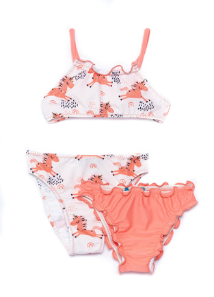 Μαγιό μπικίνι TORTUE με τύπωμα ζωάκια σε κίτρινο χρώμα.