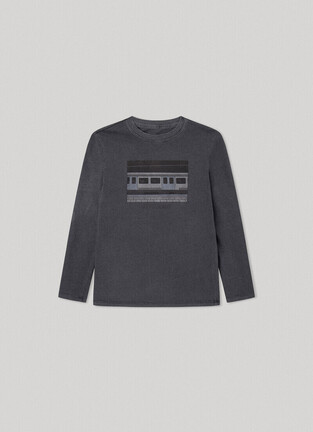PEPE JEANS blouse in black stonewashed color with embossed print.