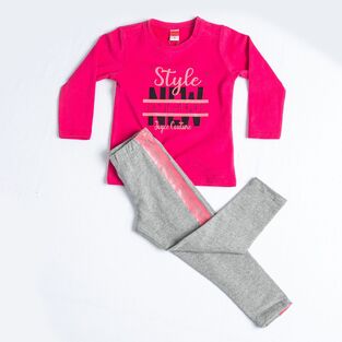 EVITA leggings set in fuchsia color with sequin logo.
