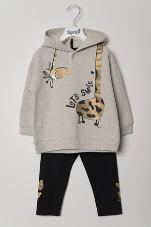 EVITA leggings set in gray with embossed "LET'S GO TRAVEL" logo.