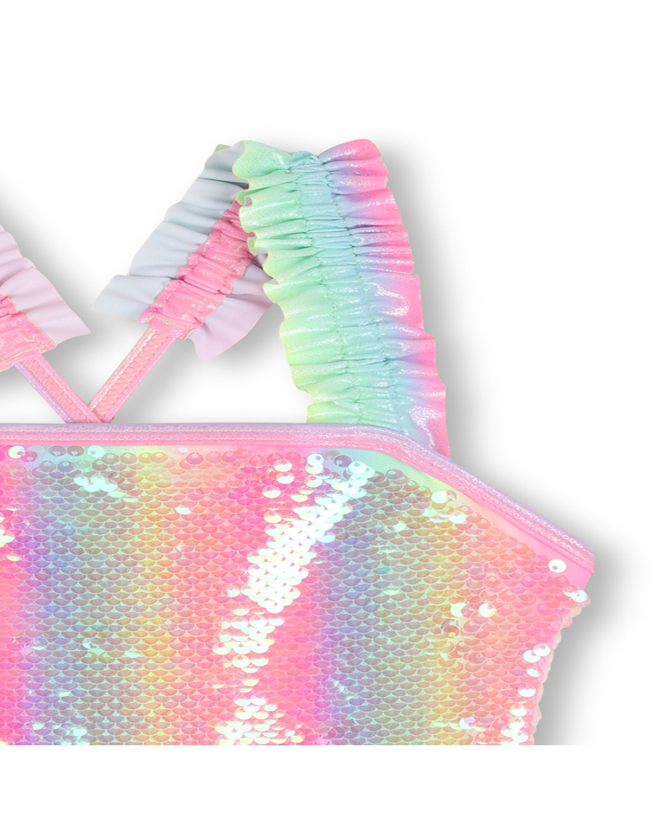 Ολόσωμο μαγιό BILLIEBLUSH πολύχρωμο με διαφανείς παγιέτες στο μπροστινό μέρος. Διαθέτει τιράντες διακοσμημένες από βολάν και εσωτερική επένδυση.