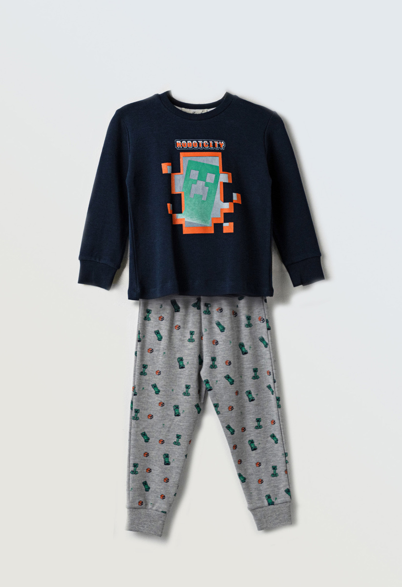 Πιτζάμα HOMMIES σε μπλε σκούρο-γκρι χρώμα με all over τύπωμα.