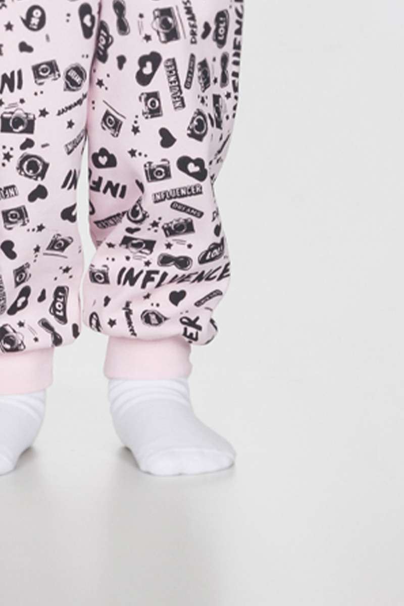 Πιτζάμα DREAMS σε ροζ χρώμα, μπλούζα βαμβακερή με ανάγλυφο τύπωμα και παντελόνι βαμβακερό με λάστιχο στη μέση και το τελείωμα.