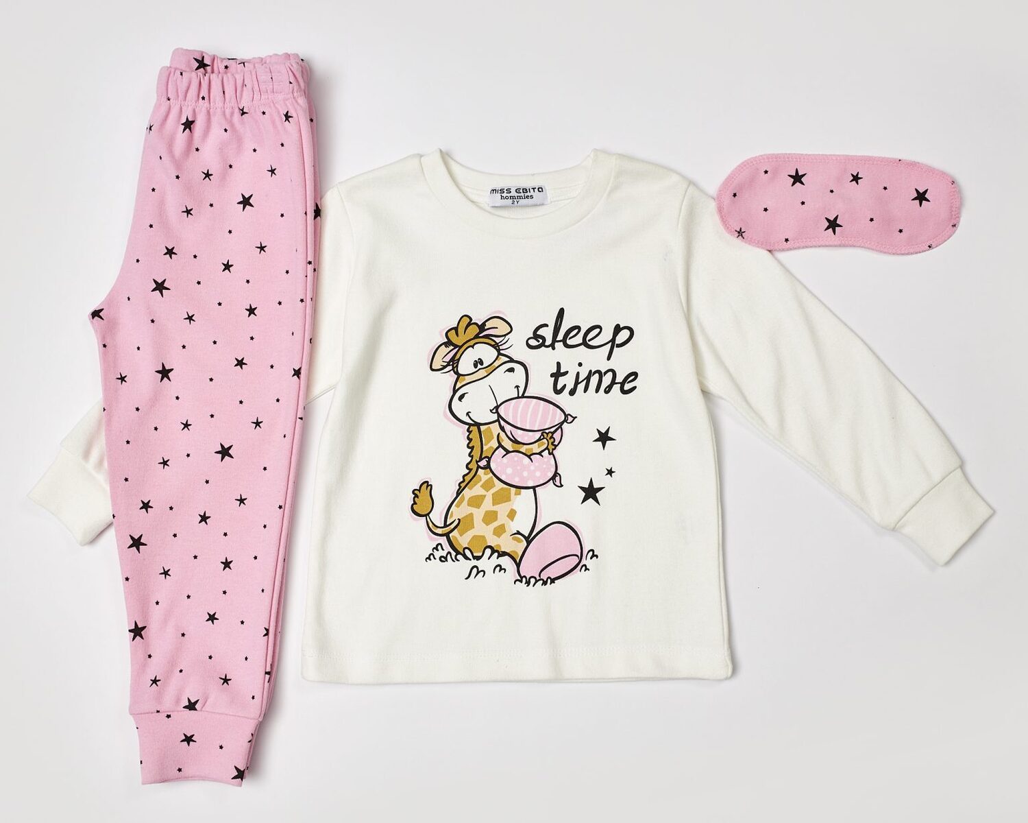 Πιτζάμα HOMMIES με ασορτί μάσκα ύπνου σε εκρού με ροζ χρώμα.