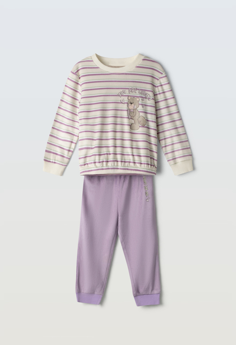 Πιτζάμα βελουτέ HOMMIES σε εκρού-λιλά χρώμα.
