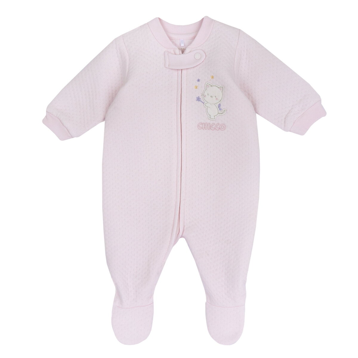 Φορμάκι καπιτονέ CHICCO σε ροζ χρώμα με ανάγλυφο τύπωμα, κούμπωμα με φερμουάρ και τρουκς στο μπροστινό μέρος.