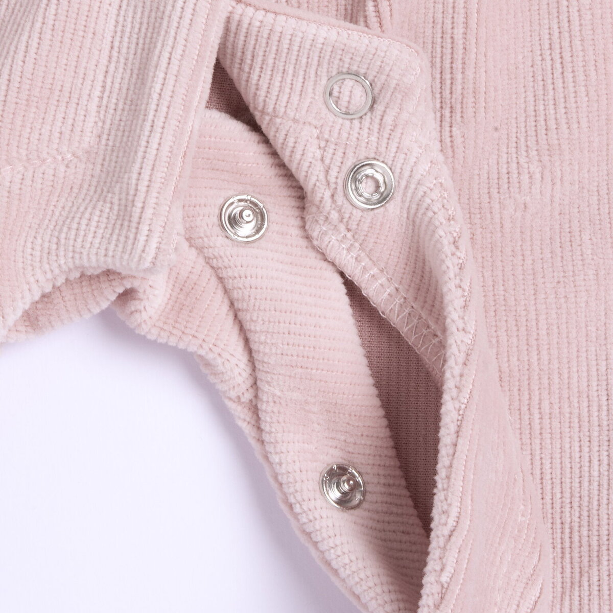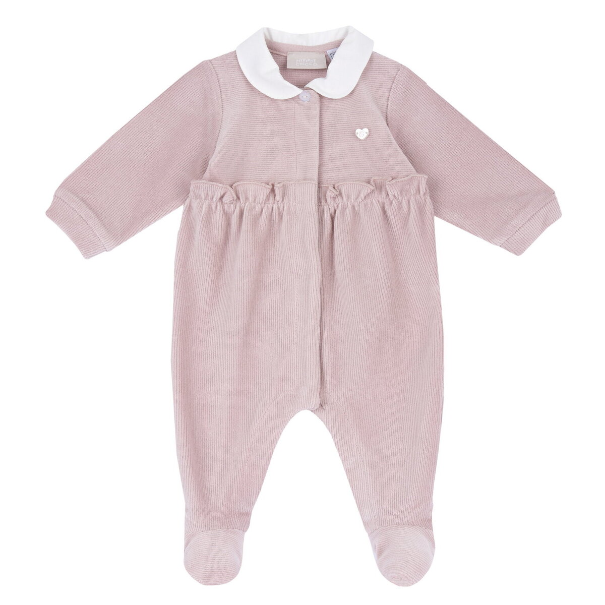 Βελουτέ φορμάκι CHICCO σε ροζ χρώμα με ριπ σχέδιο, γιακά και κούμπωμα με τρουκς στο μπροστινό μέρος.