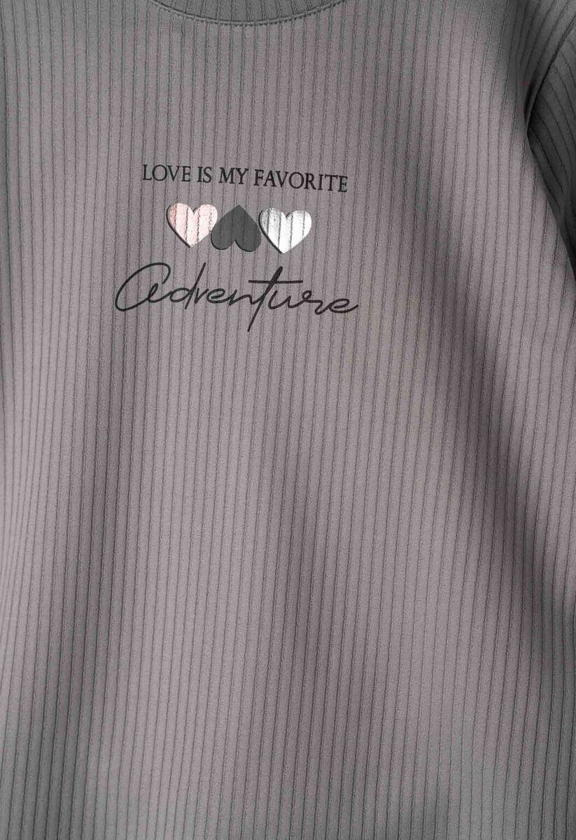 Μπλούζα βαμβακερή ριπ ΕΒΙΤΑ, με μεταλιζέ τύπωμα στο μπροστινό μέρος, σε γκρι χρώμα.