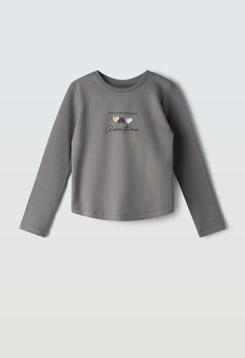 Μπλούζα βαμβακερή ριπ ΕΒΙΤΑ σε γκρι χρώμα.