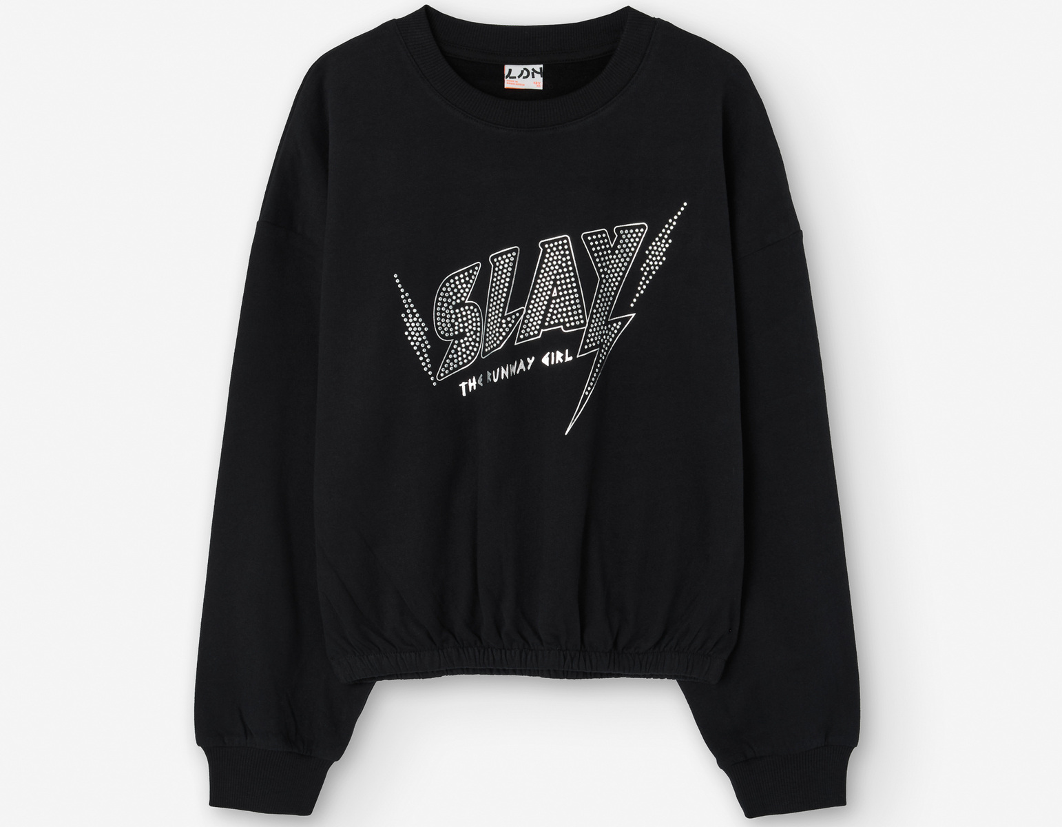 Μπλούζα φούτερ LOSAN σε μαύρο χρώμα με στρογγυλή λαιμόκοψη, διακοσμητικά στρας, λάστιχο στα μανίκια και το τελείωμα.