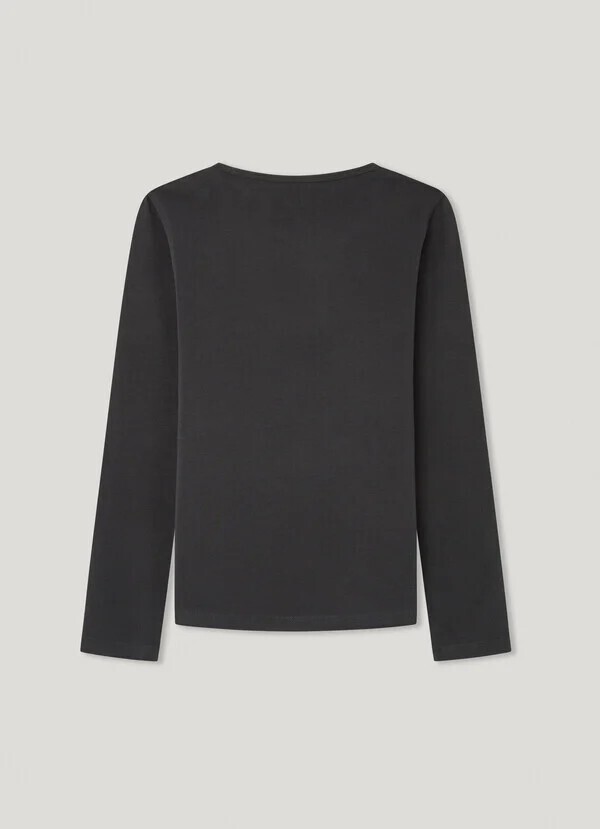 Μπλούζα PEPE JEANS σε μαύρο χρώμα με στρογγυλή λαιμόκοψη και γκλίτερ στο λογότυπο.