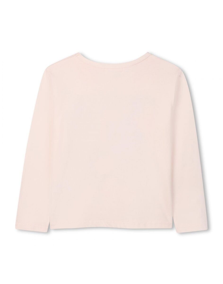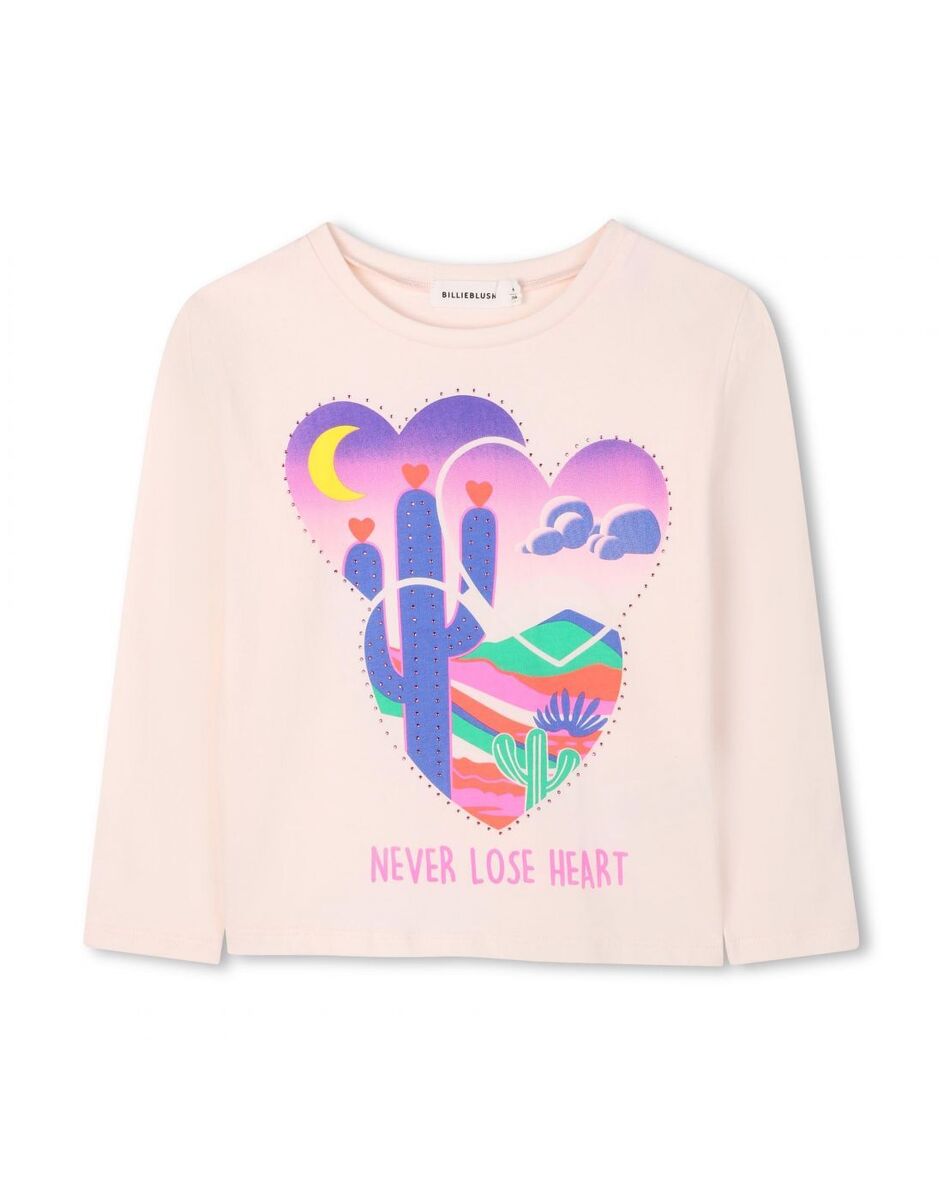 Μπλούζα βαμβακερή BILLIEBLUSH σε ανοιχτό ροζ χρώμα με πολύχρωμο ανάγλυφο τύπωμα, στρογγυλή λαιμόκοψη και διακριτικά στρας.