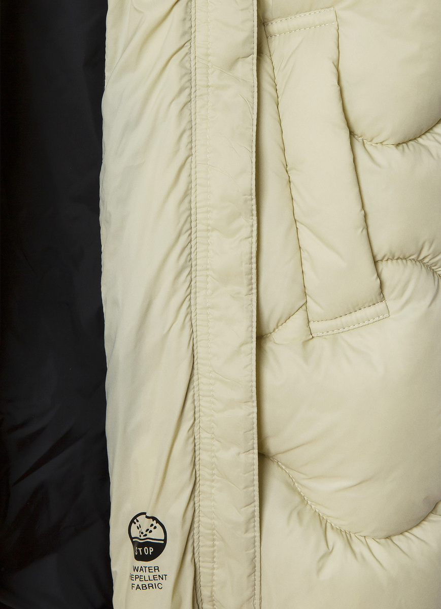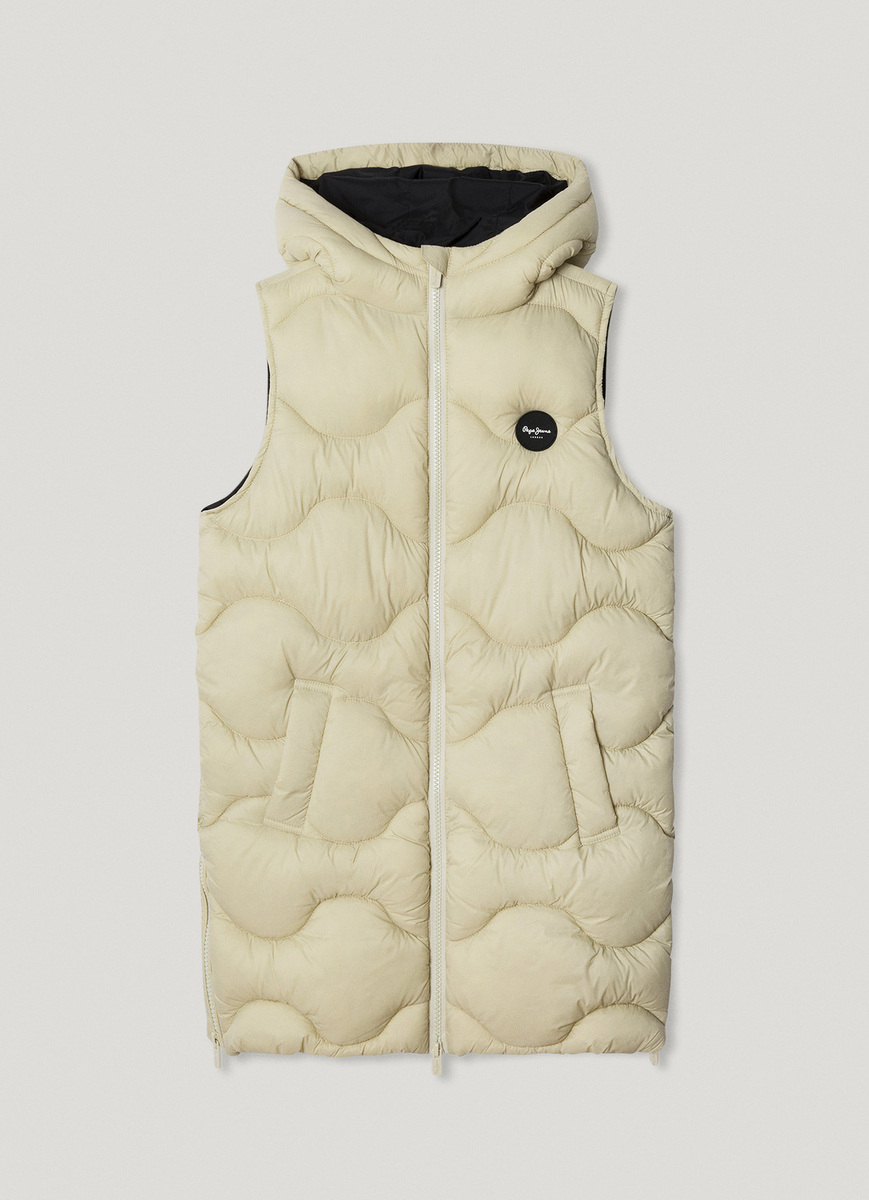Αμάνικο μπουφάν PEPE JEANS σε μπεζ χρώμα με ενσωματωμένη κουκούλα.