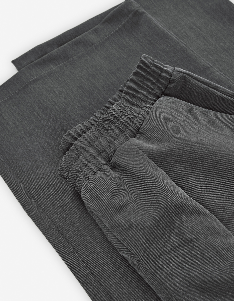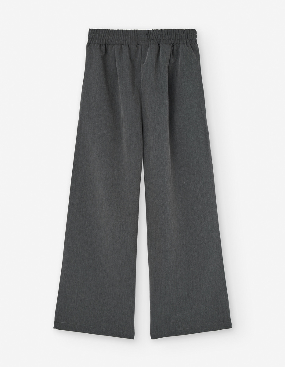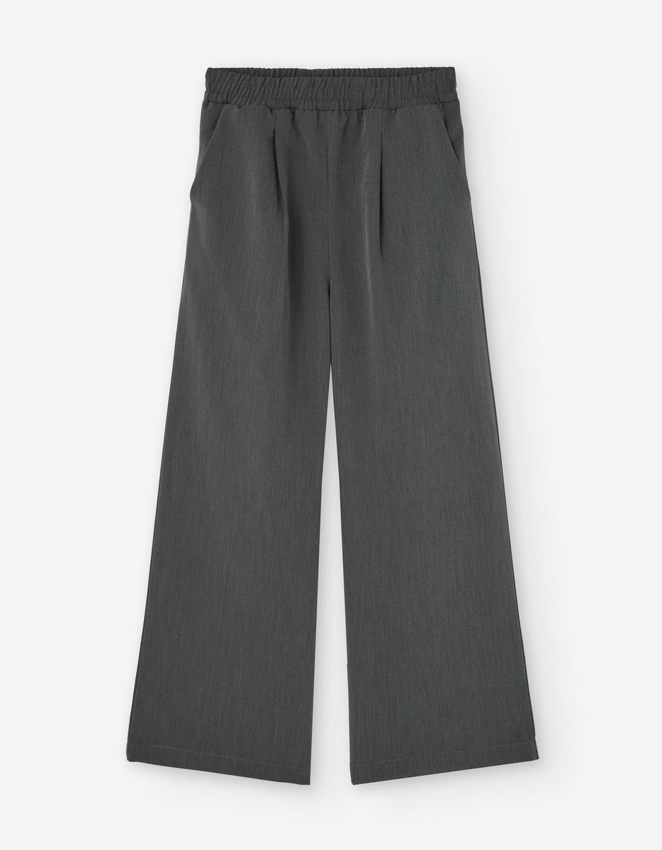 Παντελόνα twill LOSAN σε γκρι χρώμα και φαρδιά γραμμή με διακριτικές πιέτες, λάστιχο στη μέση και δύο εσωτερικές τσέπες στο πλάι.