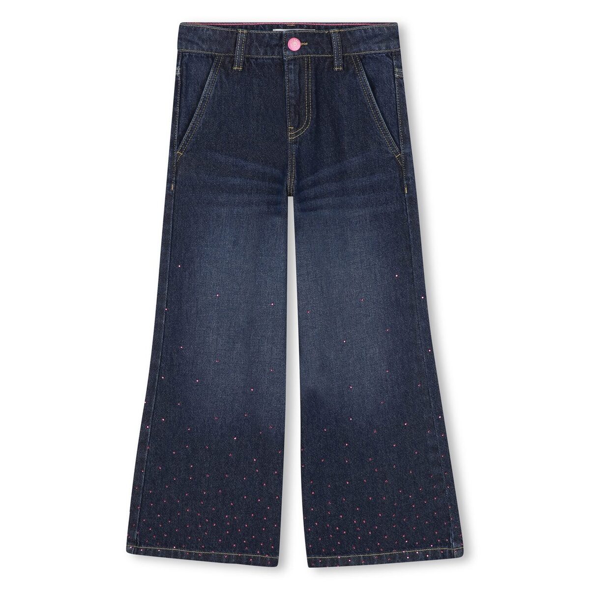 Παντελόνι τζιν BILLIEBLUSH σε μπλε σκούρο χρώμα και φαρδιά γραμμή με στρας στο τελείωμα, κούμπωμα με κουμπί και φερμουάρ, δύο εσωτερικές τσέπες στο πλάι.