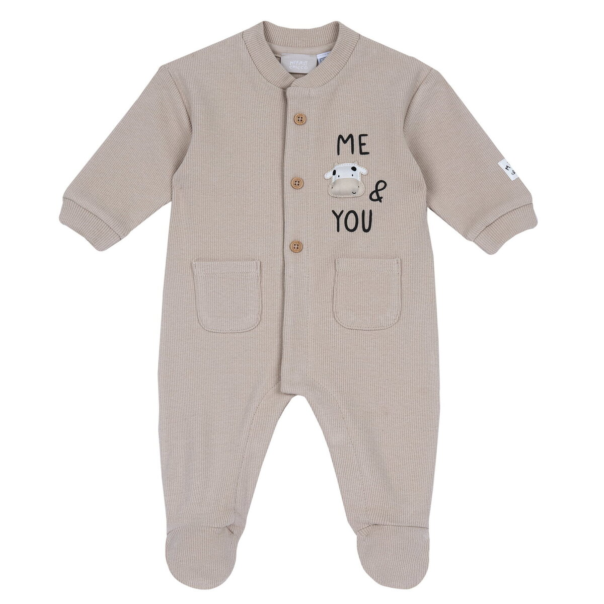 Φορμάκι ριπ CHICCO σε μπεζ χρώμα με δύο εξωτερικά τσεπάκια και κούμπωμα με τρουκς στο μπροστινό μέρος.