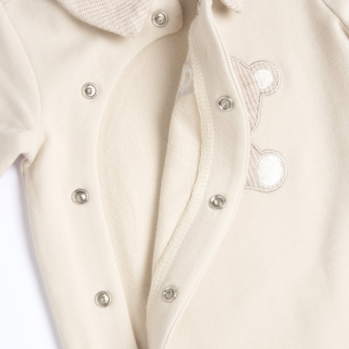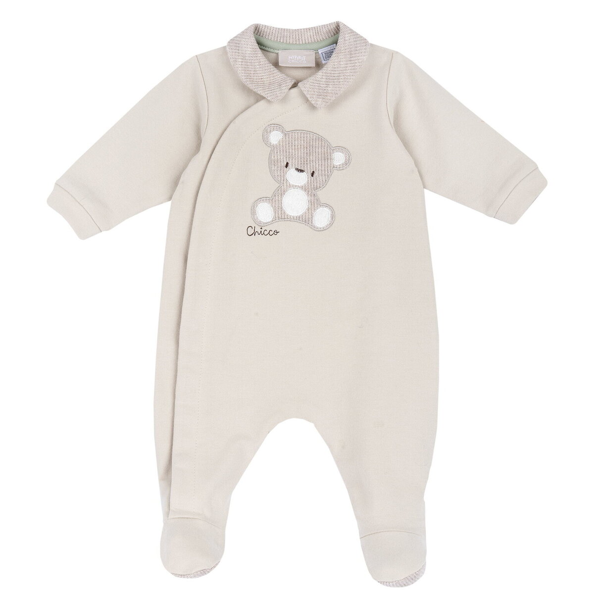 Φορμάκι φούτερ CHICCO σε ανοιχτό μπεζ χρώμα με γιακά και κούμπωμα με τρουκς στο πλάι στο μπροστινό μέρος.