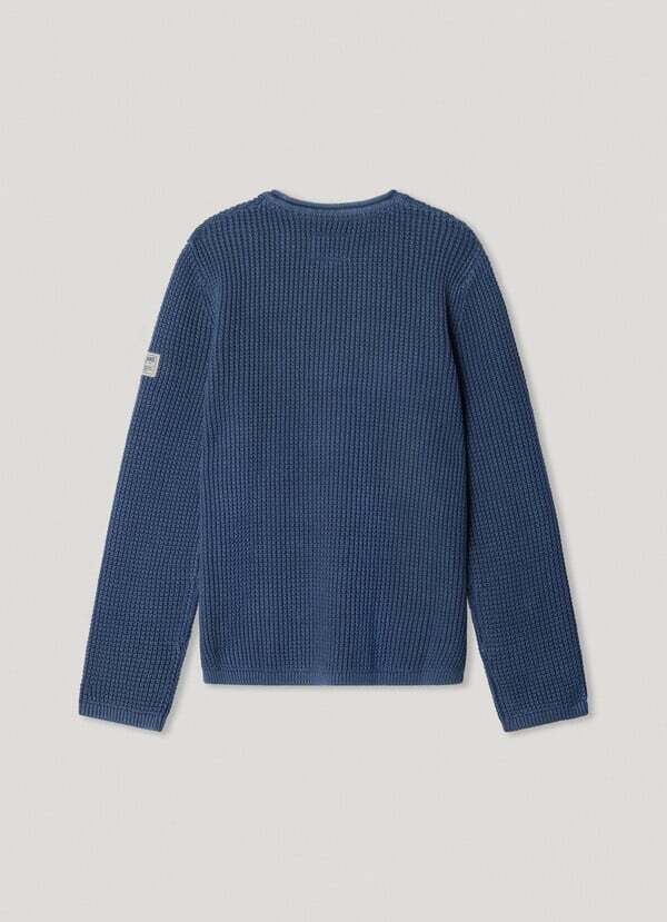 Πλεκτή μπλούζα PEPE JEANS σε χρώμα μπλε ραφ με στρογγυλή λαιμόκοψη και μικρό λογότυπο στο μανίκι.
