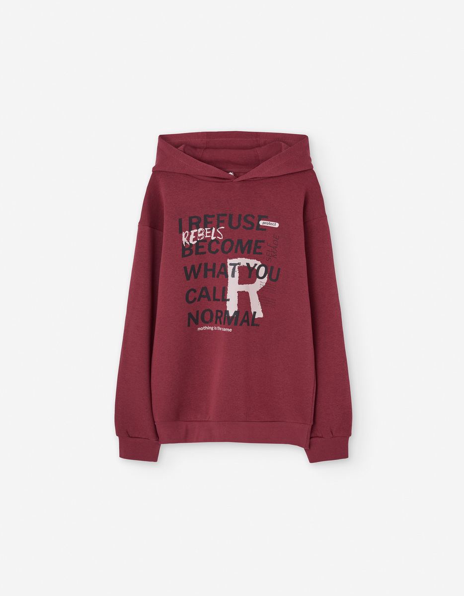 Μπλούζα φούτερ LOSAN σε μπορντώ χρώμα με κουκούλα.
