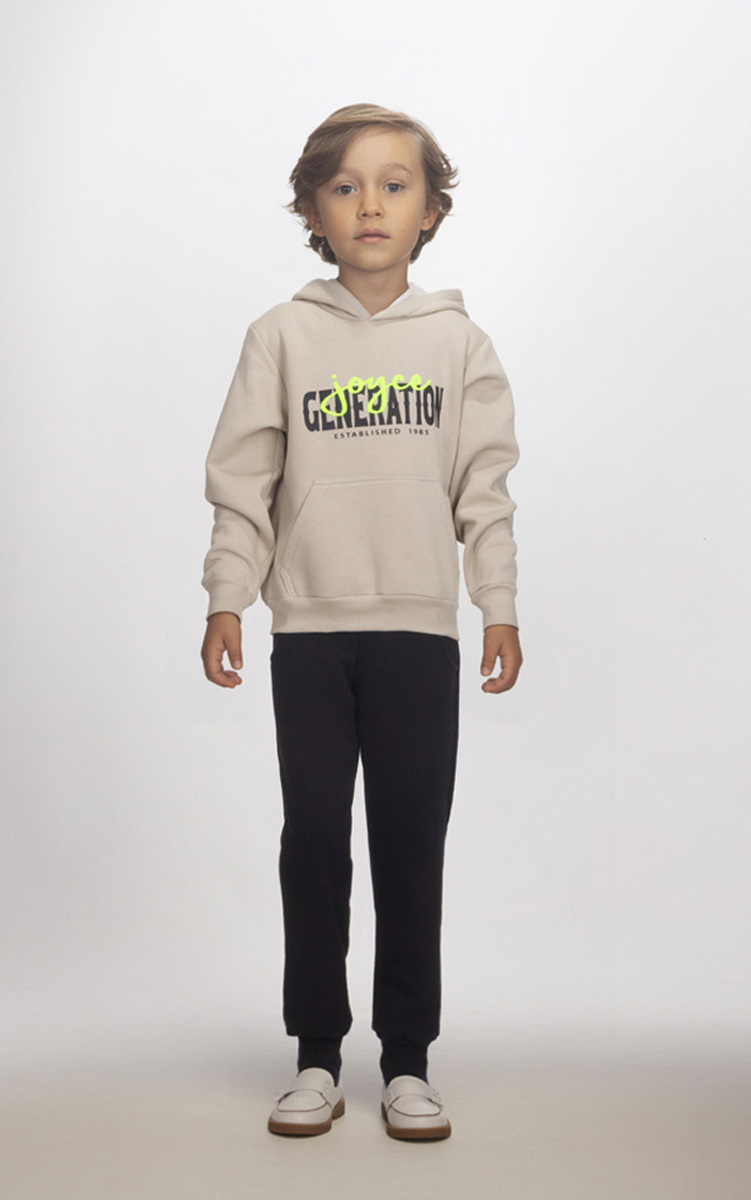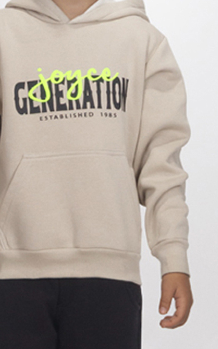 Μπλούζα φούτερ JOYCE σε μπεζ χρώμα με ενσωματωμένη κουκούλα, ανάγλυφο λογότυπο στο μπροστινό μέρος και ριπ λάστιχο στα μανίκια και το τελείωμα.
