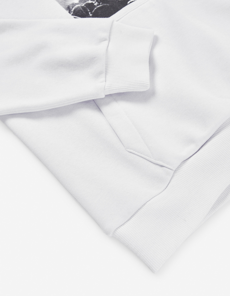 Μπλούζα φούτερ LOSAN σε λευκό χρώμα με τύπωμα στο μπροστινό μέρος, ενσωματωμένη κουκούλα και ριπ λάστιχο στα μανίκια και το τελείωμα.