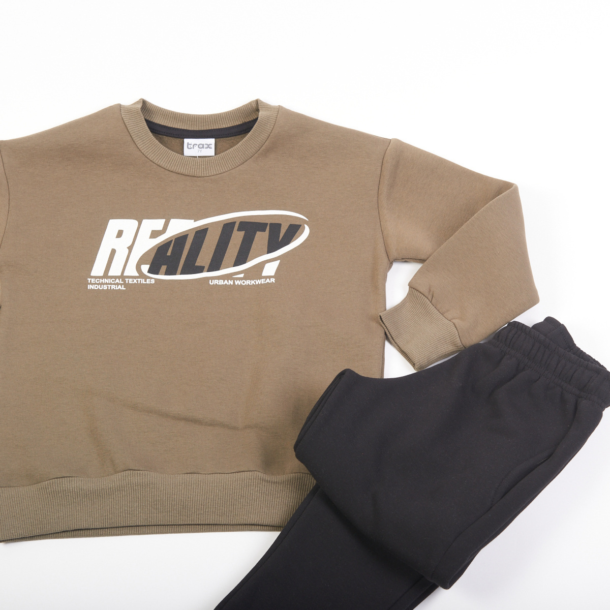 Σετ φόρμας TRAX, μπλούζα φούτερ με στρογγυλή λαιμόκοψη σε χακί χρώμα και παντελόνι φούτερ με λάστιχο στη μέση σε χρώμα μαύρο.