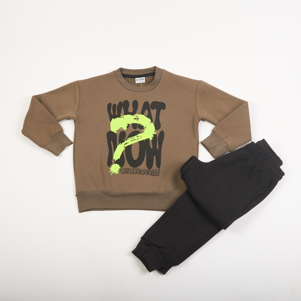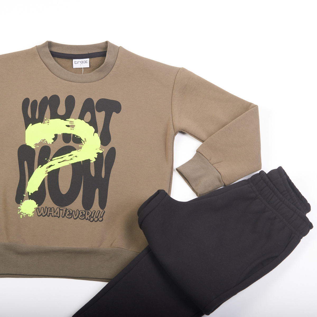 Σετ φόρμας TRAX, μπλούζα φούτερ με στρογγυλή λαιμόκοψη σε χακί χρώμα και παντελόνι φούτερ με λάστιχο στη μέση σε χρώμα μαύρο.