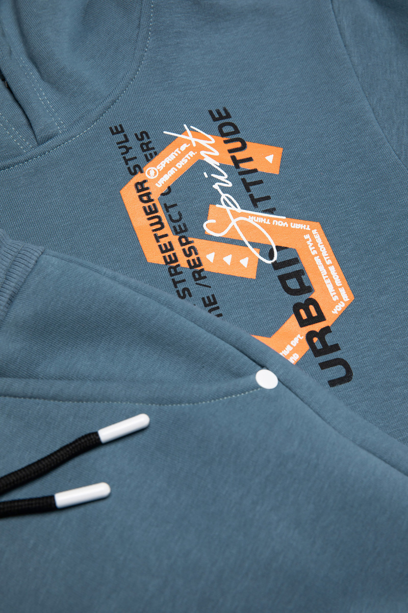 Σετ φόρμας SPRINT, μπλούζα φούτερ με ενσωματωμένη κουκούλα και παντελόνι φούτερ με λάστιχο και ανεξάρτητο εσωτερικό κορδόνι στη μέση σε μπλε ραφ χρώμα.