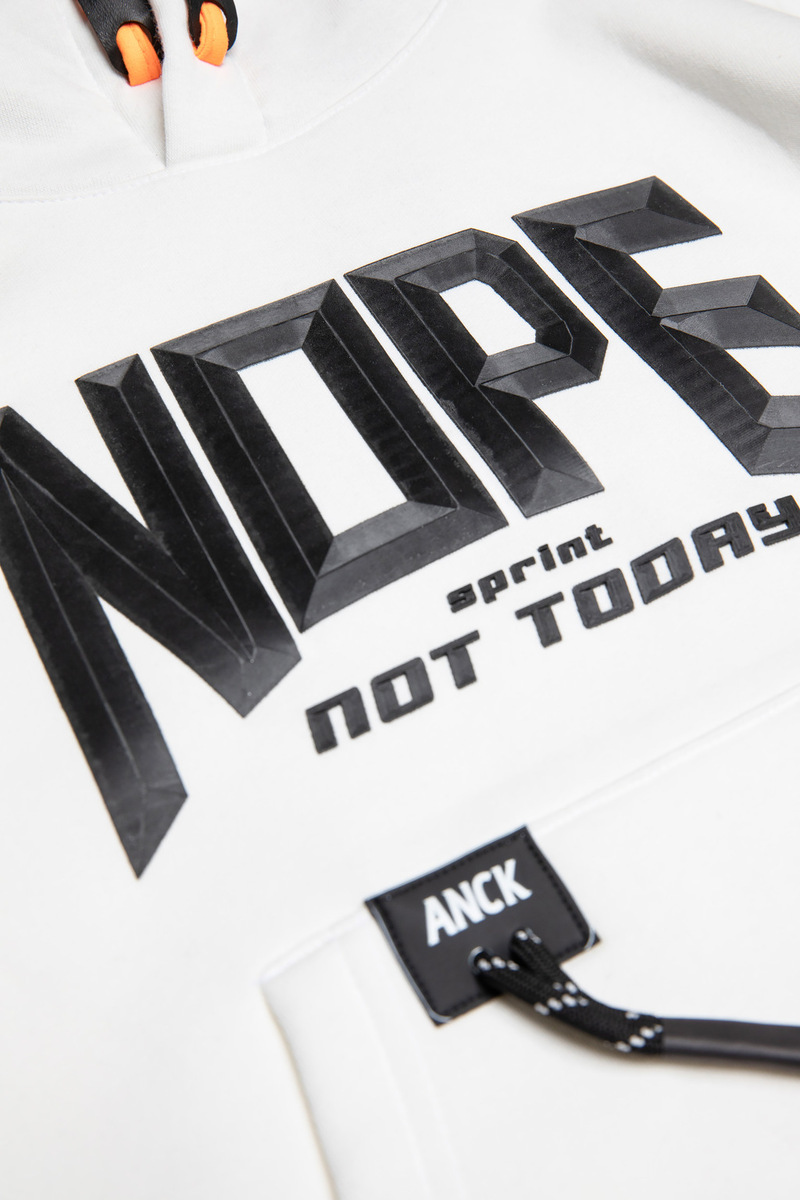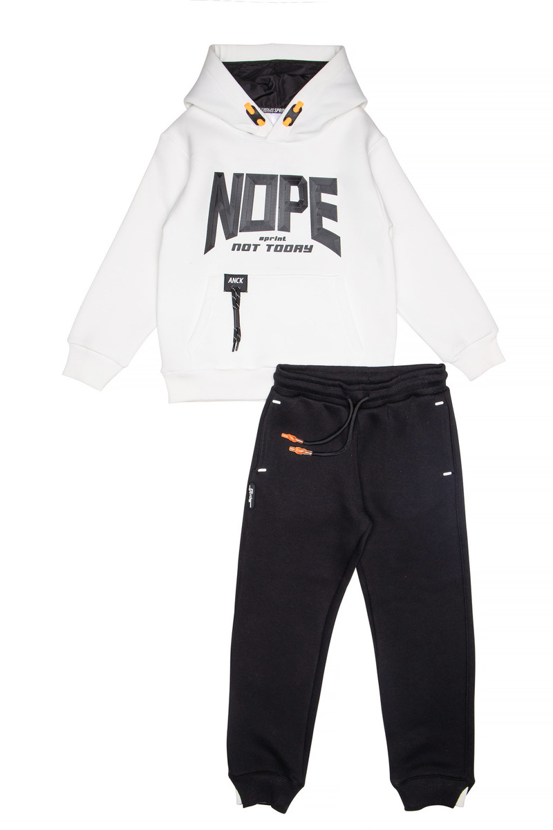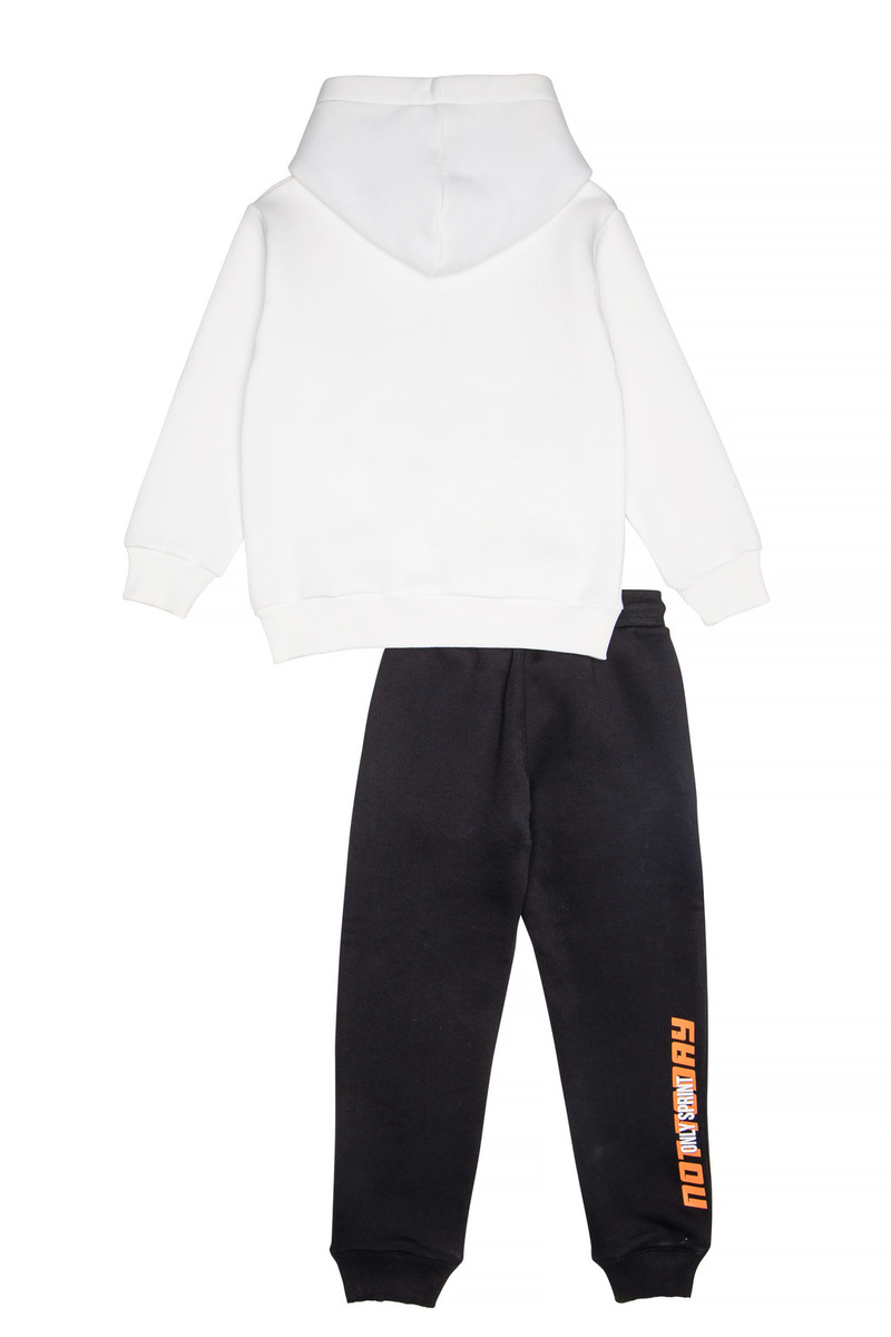 Σετ φόρμας SPRINT, μπλούζα φούτερ σε λευκό χρώμα με ενσωματωμένη κουκούλα αδιάβροχη στο εσωτερικό και παντελόνι φούτερ σε μαύρο χρώμα με λάστιχο και ανεξάρτητο εσωτερικό κορδόνι στη μέση.