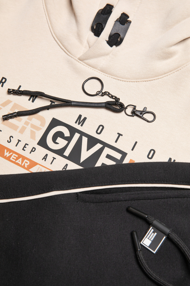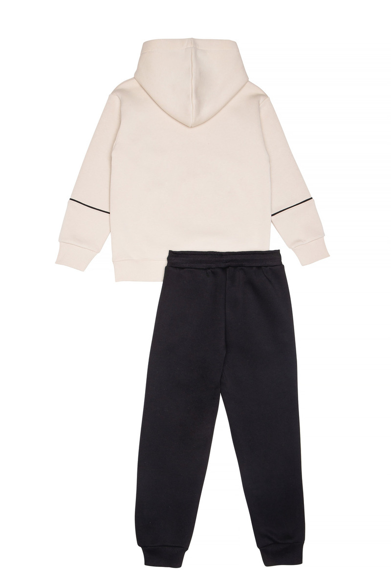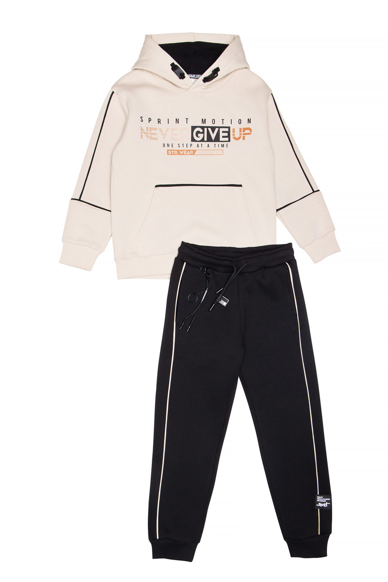 Σετ φόρμας SPRINT, μπλούζα φούτερ με ενσωματωμένη δίχρωμη κουκούλα και παντελόνι φούτερ με λάστιχο και ανεξάρτητο εσωτερικό κορδόνι στη μέση σε εκρού χρώμα.