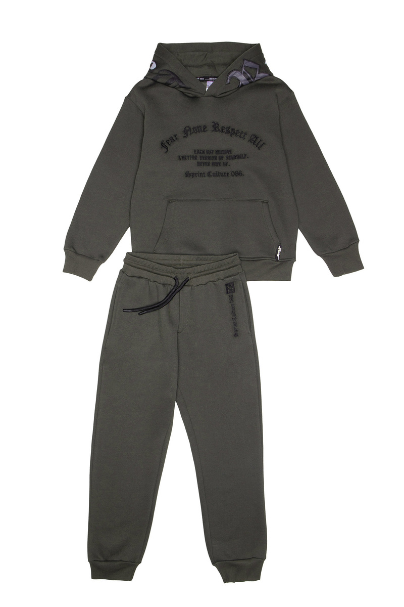 Σετ φόρμας SPRINT, μπλούζα φούτερ με ενσωματωμένη κουκούλα και παντελόνι φούτερ με λάστιχο και ανεξάρτητο εσωτερικό κορδόνι στη μέση σε χακί χρώμα.