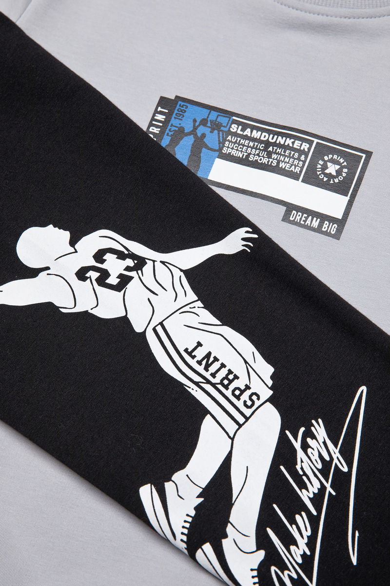 Εποχιακό σετ φόρμας SPRINT, μπλούζα φούτερ με στρογγυλή λαιμόκοψη σε γκρι ανοιχτό χρώμα και παντελόνι φούτερ με λάστιχο και ανεξάρτητο εσωτερικό κορδόνι στη μέση σε χρώμα μαύρο.