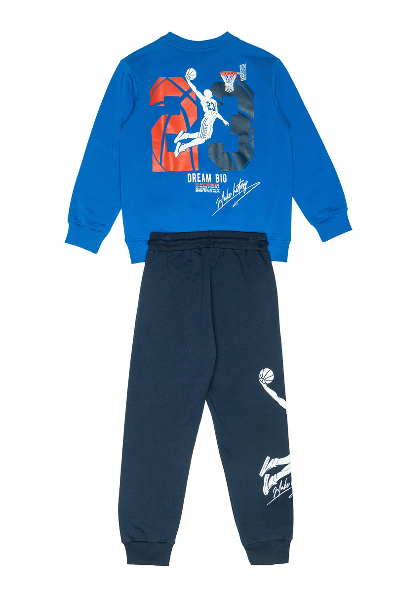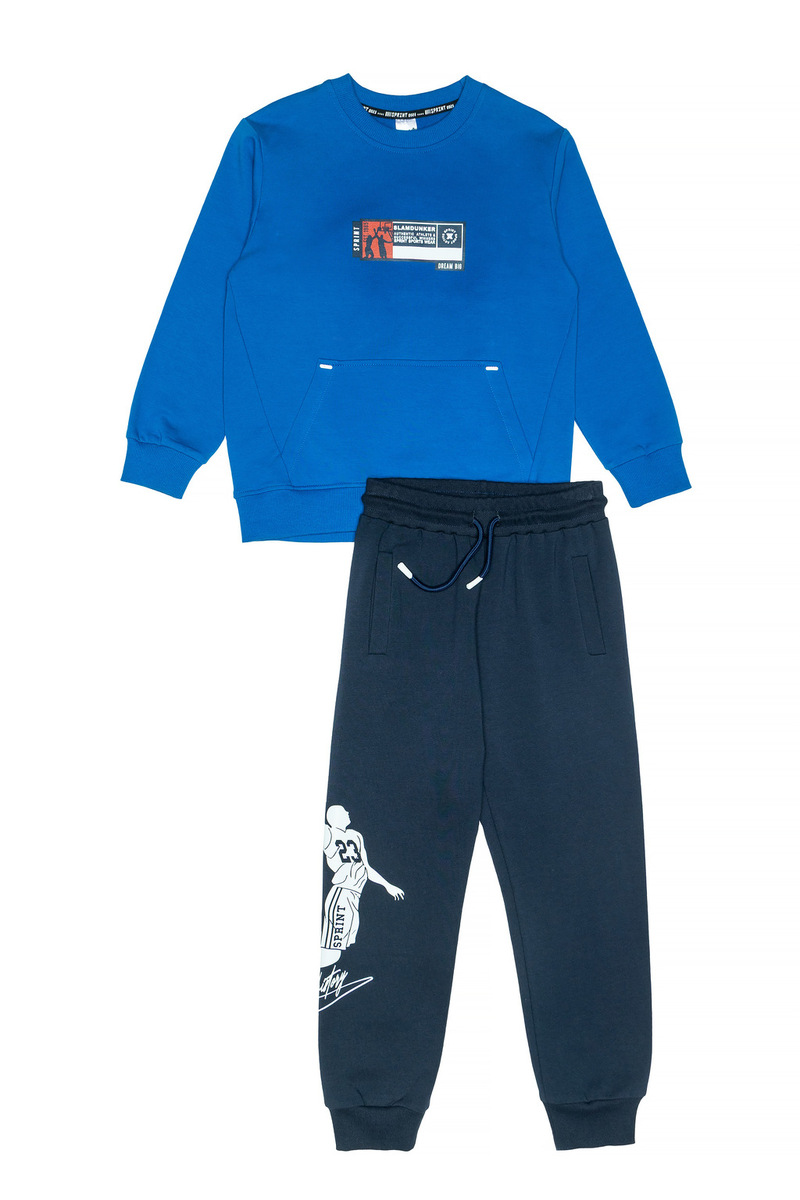 Εποχιακό σετ φόρμας SPRINT, μπλούζα φούτερ με στρογγυλή λαιμόκοψη σε μπλε ρουά χρώμα και παντελόνι φούτερ με λάστιχο και ανεξάρτητο εσωτερικό κορδόνι στη μέση σε χρώμα μπλε σκούρο.