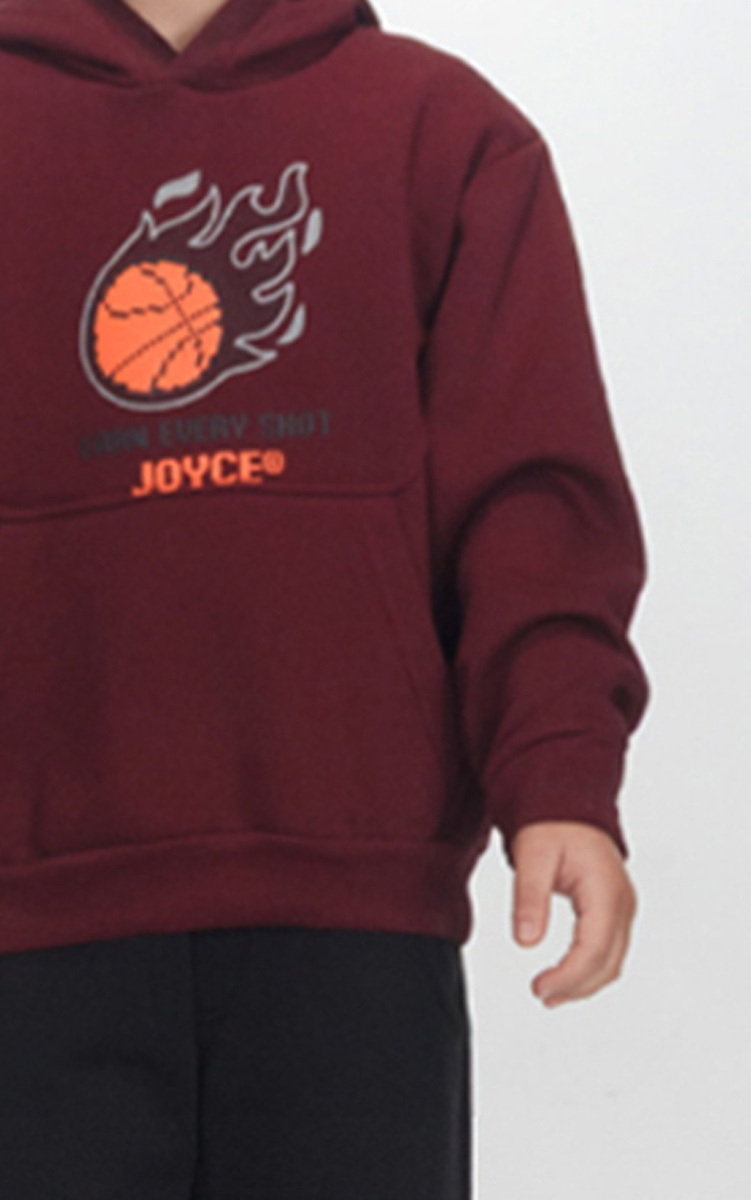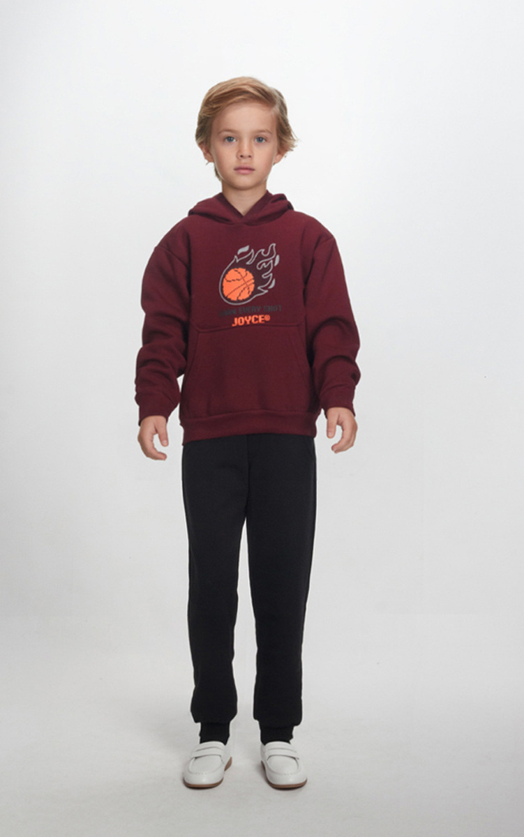 Σετ φόρμας JOYCE, μπλούζα φούτερ σε μπορντώ χρώμα με ενσωματωμένη κουκούλα, ριπ λάστιχο στα μανίκια και το τελείωμα και μια εξωτερική τσέπη, παντελόνι φούτερ σε μαύρο χρώμα με λάστιχο στη μέση και το τελείωμα.