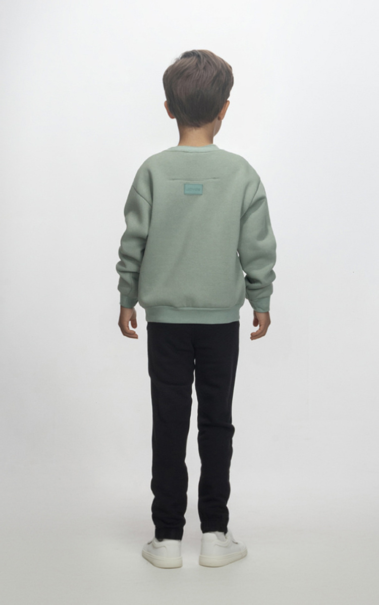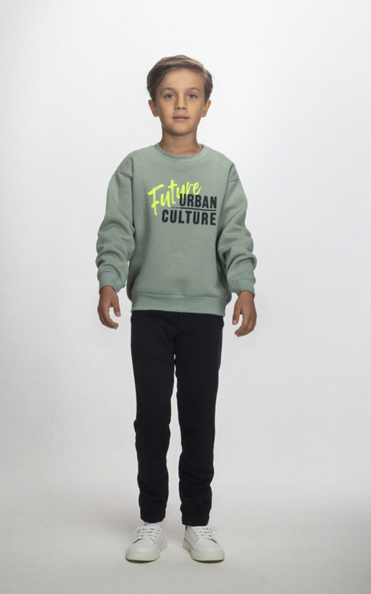 Σετ φόρμας JOYCE, μπλούζα φούτερ σε μέντα χρώμα με στρογγυλή λαιμόκοψη, ριπ λάστιχο στα μανίκια και το τελείωμα και παντελόνι φούτερ σε χρώμα μαύρο με λάστιχο στη μέση και το τελείωμα.