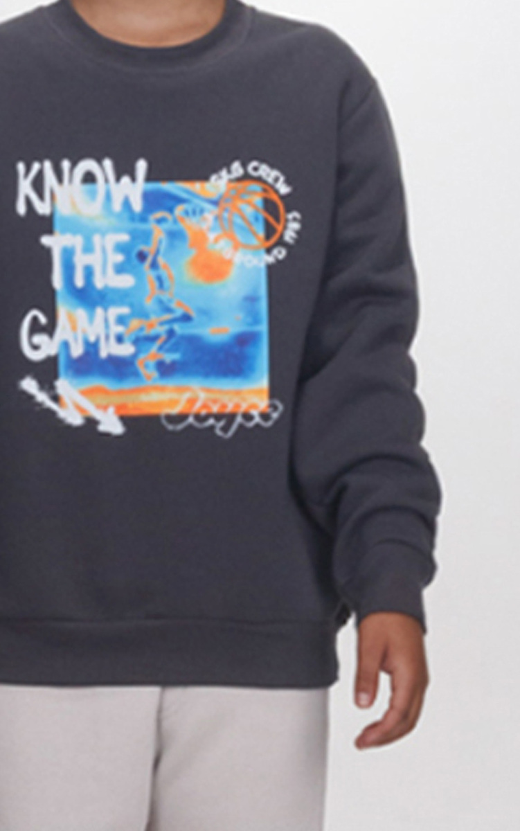 Σετ φόρμας JOYCE, μπλούζα φούτερ σε ανθρακί χρώμα με στρογγυλή λαιμόκοψη, ριπ λάστιχο στα μανίκια και το τελείωμα και παντελόνι φούτερ σε χρώμα γκρι με λάστιχο στη μέση και το τελείωμα.
