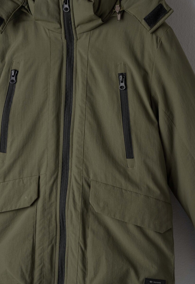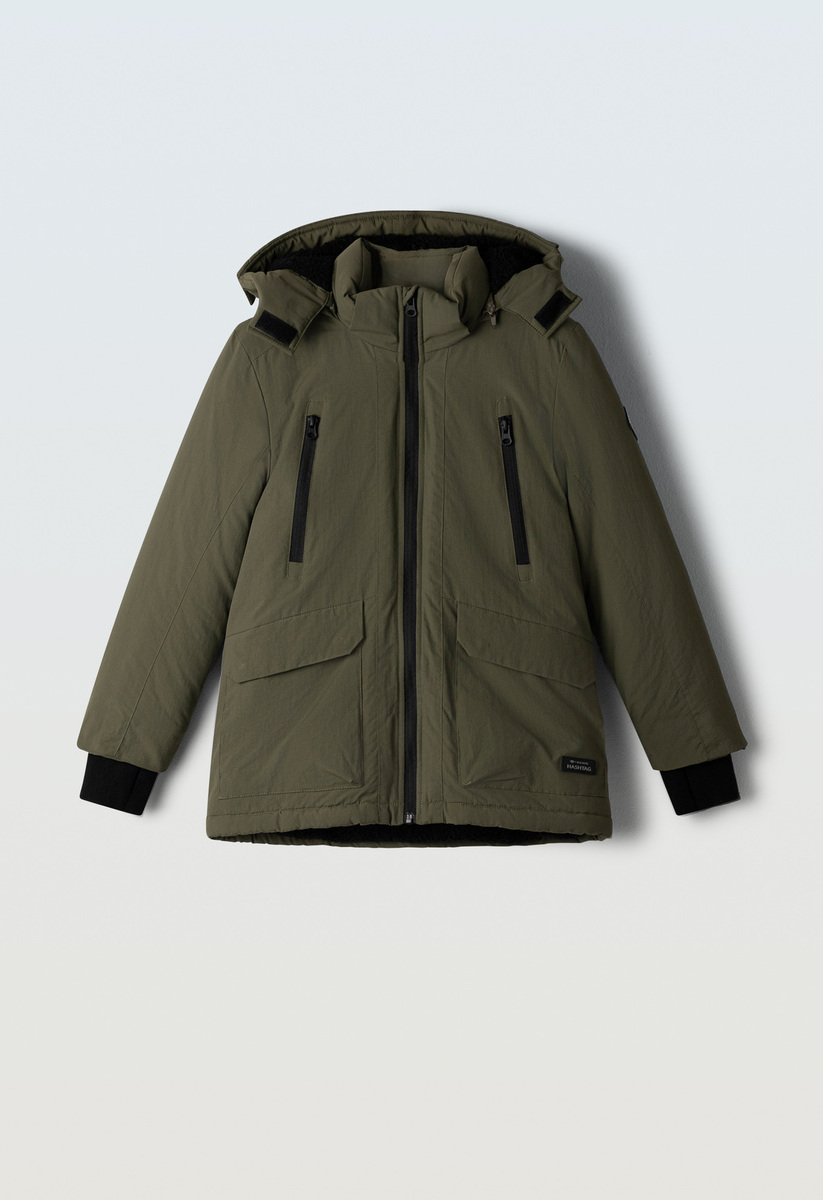 Μπουφάν παρκά HASHTAG σε χακί χρώμα με αποσπώμενη κουκούλα, κούμπωμα με φερμουάρ. λάστιχο στα μανίκια, γούνινη εσωτερική επένδυση και εξωτερικές τσέπες με φερμουάρ στο στήθος.