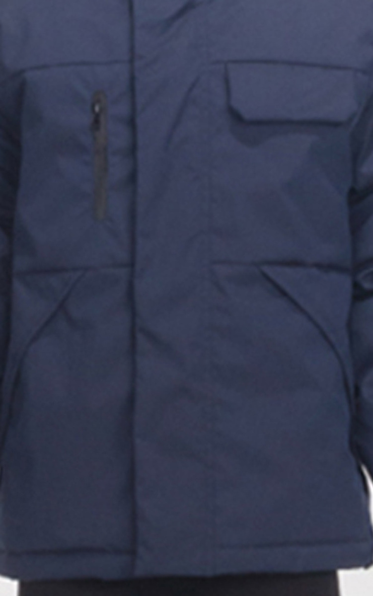 Μπουφάν JOYCE σε μπλε χρώμα με ενσωματωμένη κουκούλα, διπλό κούμπωμα με φερμουάρ και κουμπιά, εσωτερική φόδρα, εξωτερικές και εσωτερικές τσέπες στο μπροστινό μέρος.