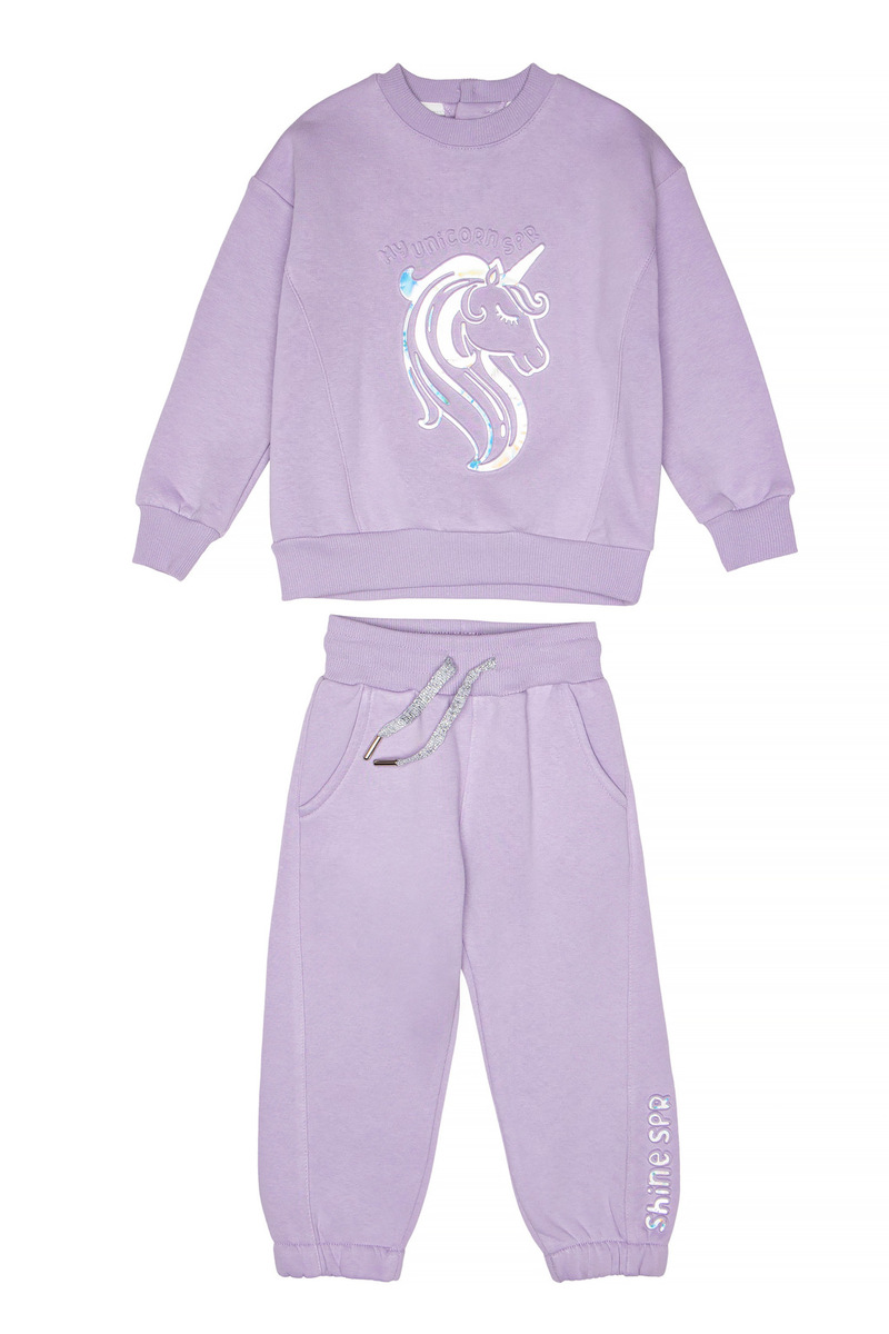 Σετ φόρμα SPRINT, μπλούζα φούτερ με στρογγυλή λαιμόκοψη και παντελόνι φούτερ με λάστιχο και ανεξάρτητο εσωτερικό κορδόνι στη μέση σε χρώμα λιλά.