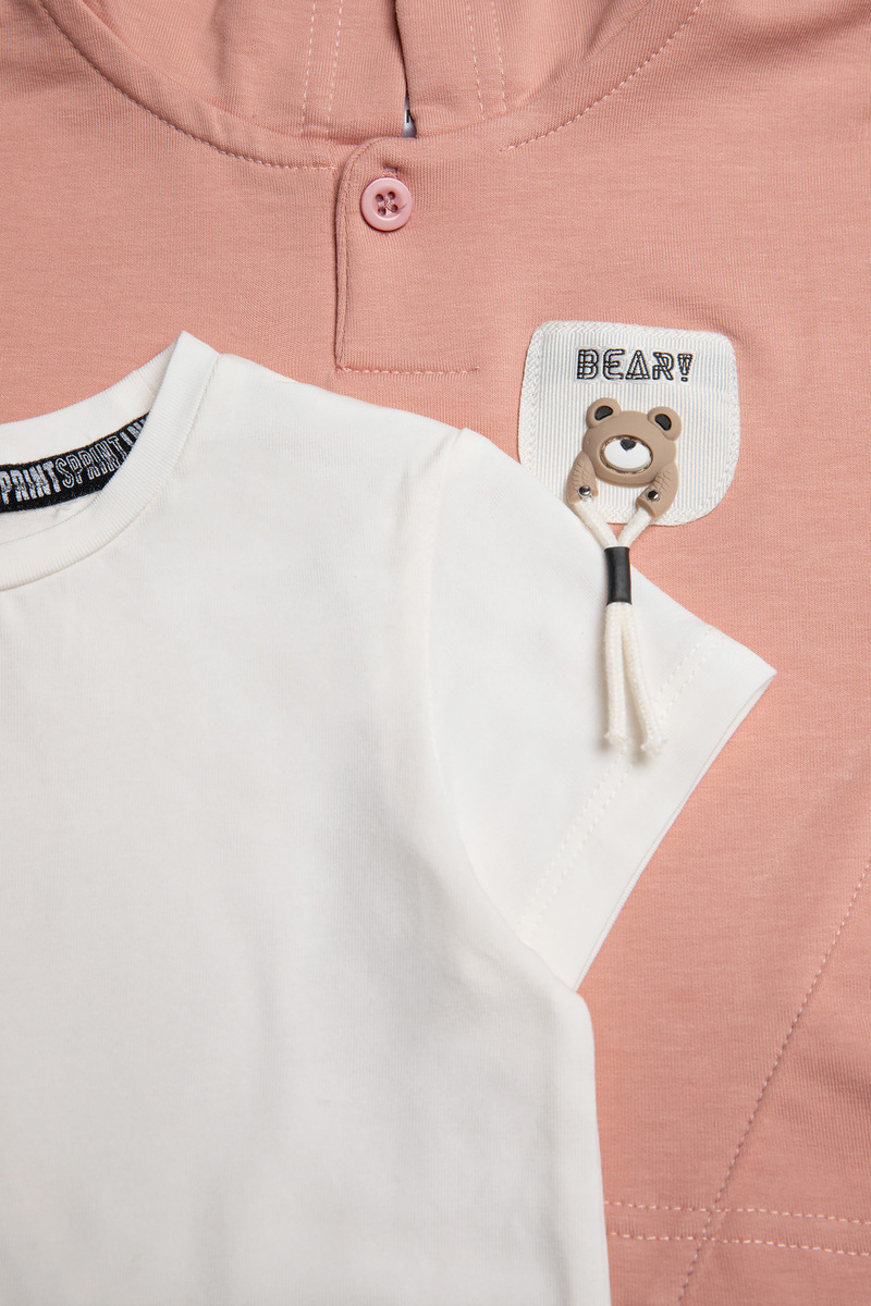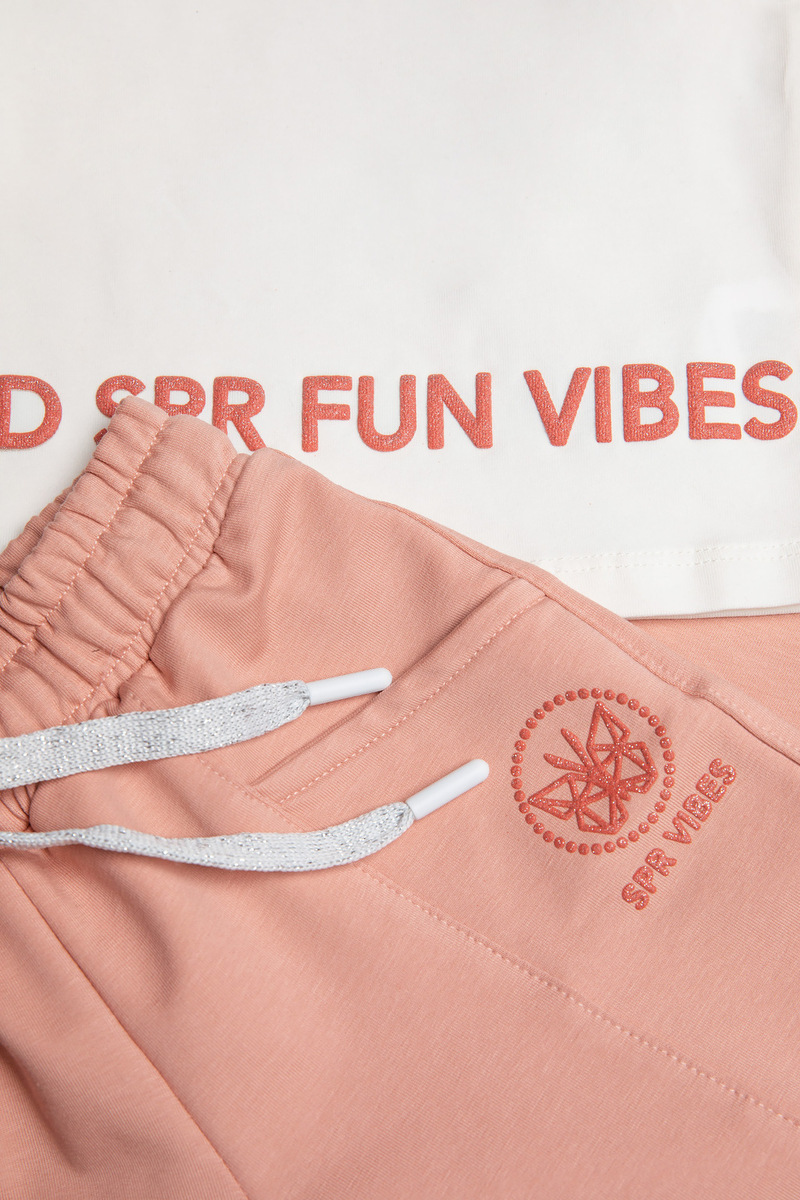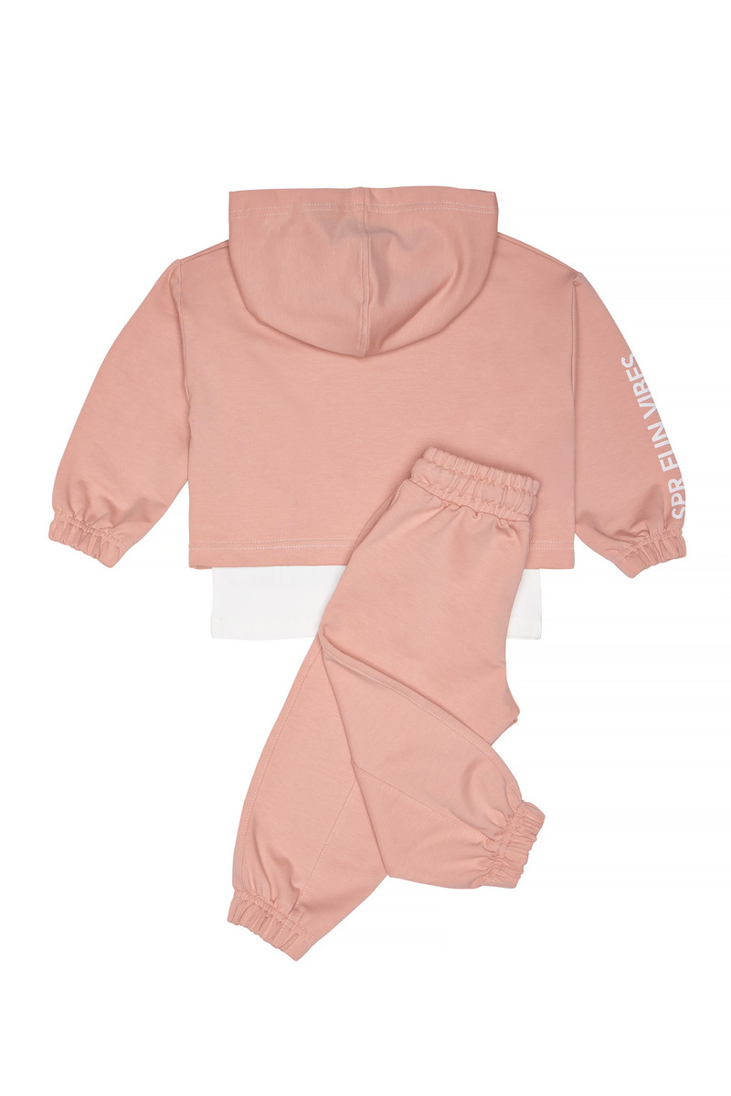 Σετ φόρμα 3 τεμ. SPRINT, μπλούζα φούτερ με κουκούλα, μπλούζα βαμβακερή με κοντό μανίκι και παντελόνι φούτερ με λάστιχο και ανεξάρτητο εσωτερικό κορδόνι στη μέση σε χρώμα ροζ σκούρο.