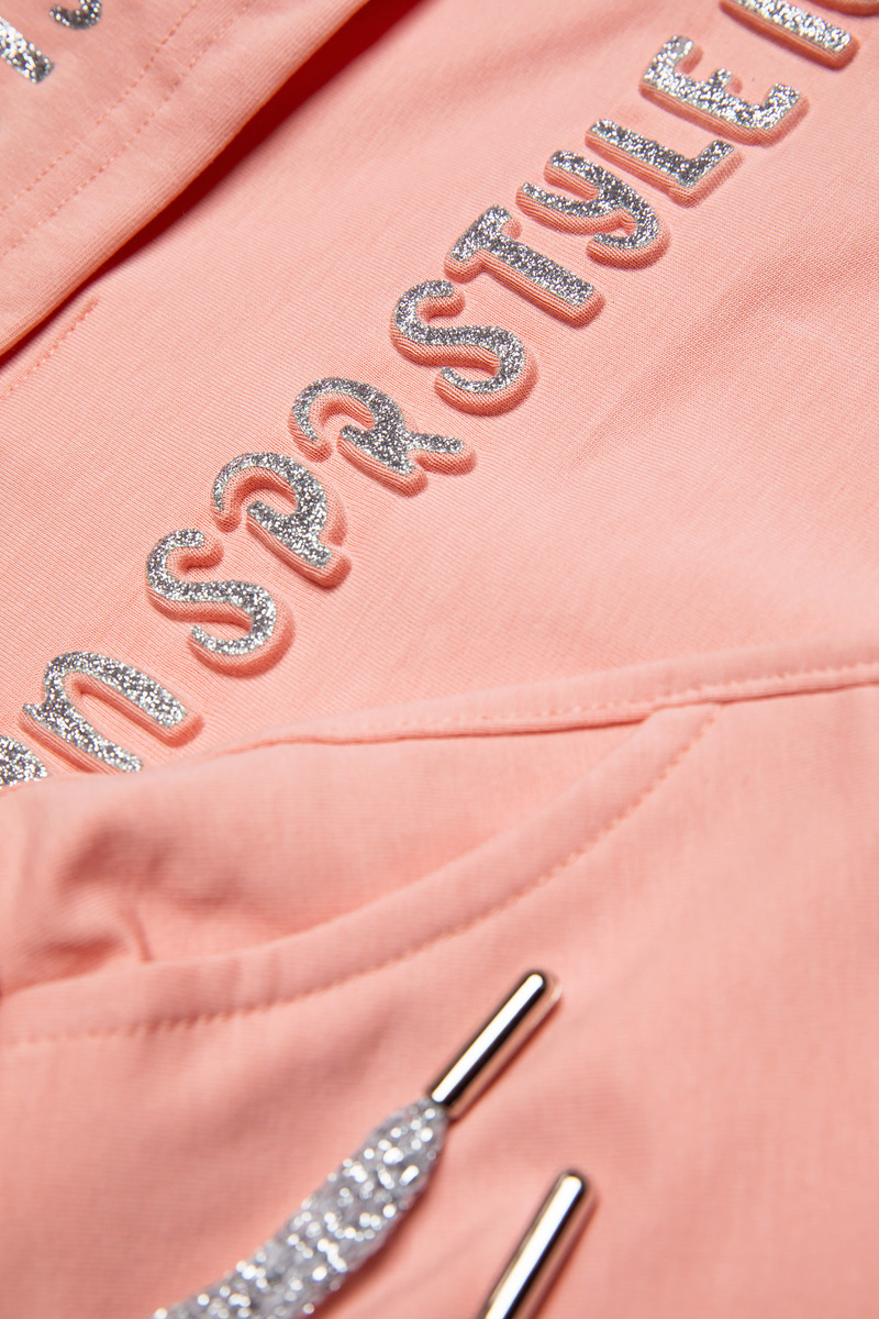 Σετ φόρμα SPRINT, μπλούζα φούτερ με ενσωματωμένη κουκούλα και παντελόνι φούτερ με λάστιχο και ανεξάρτητο εσωτερικό κορδόνι στη μέση σε χρώμα σωμόν.