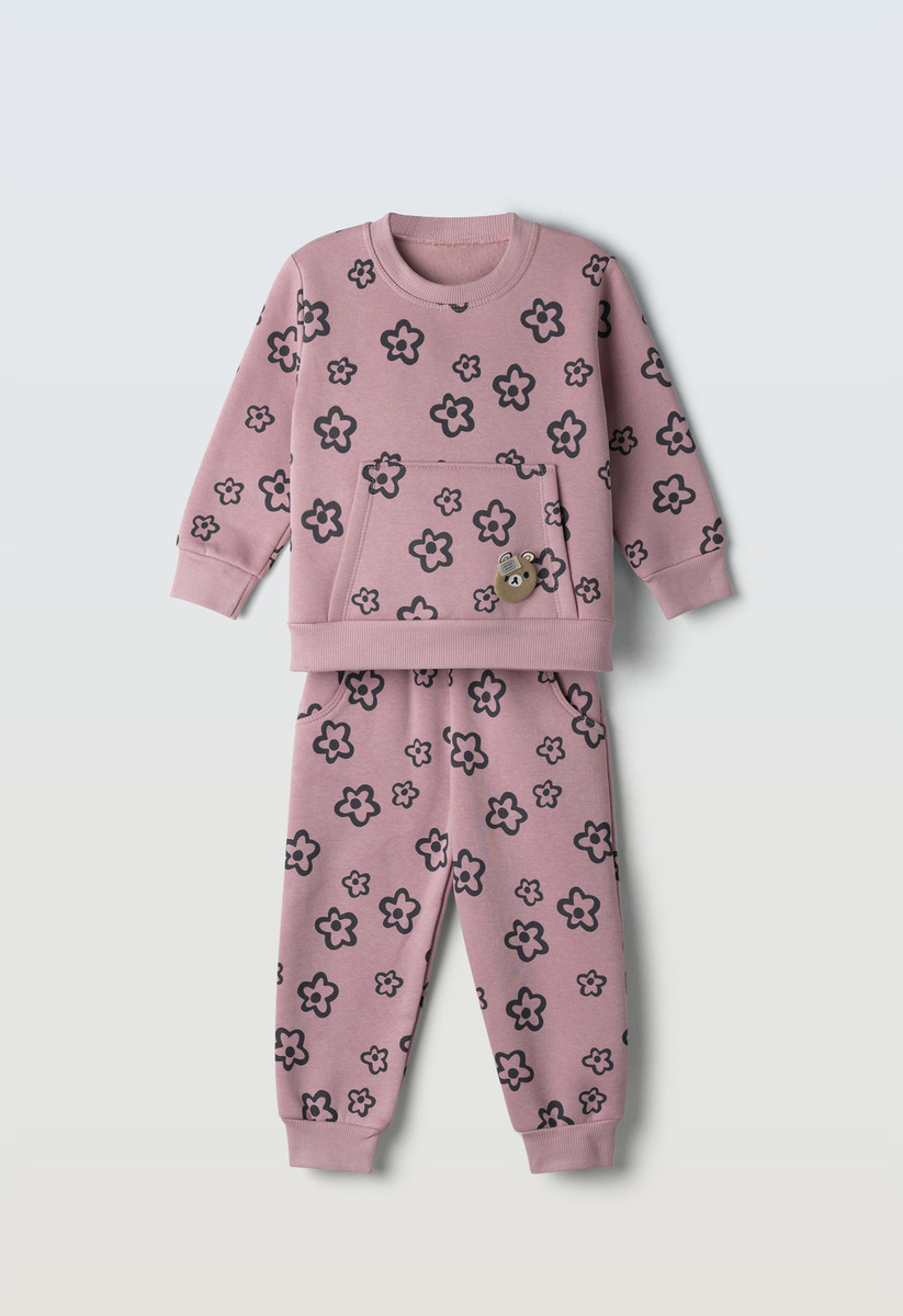 Σετ ΕΒΙΤΑ, μπλούζα φούτερ με στρογγυλή λαιμόκοψη και παντελόνι φούτερ με λάστιχο στη μέση σε ροζ σκούρο χρώμα.