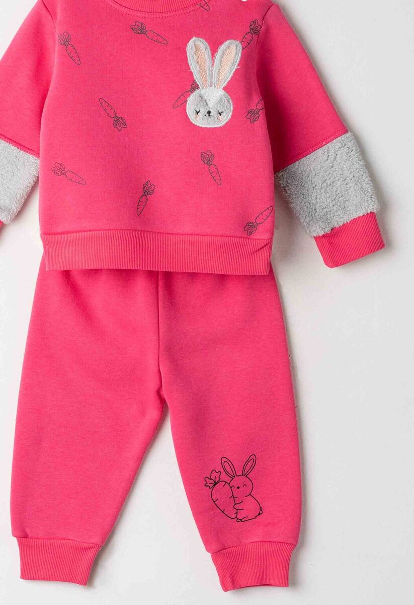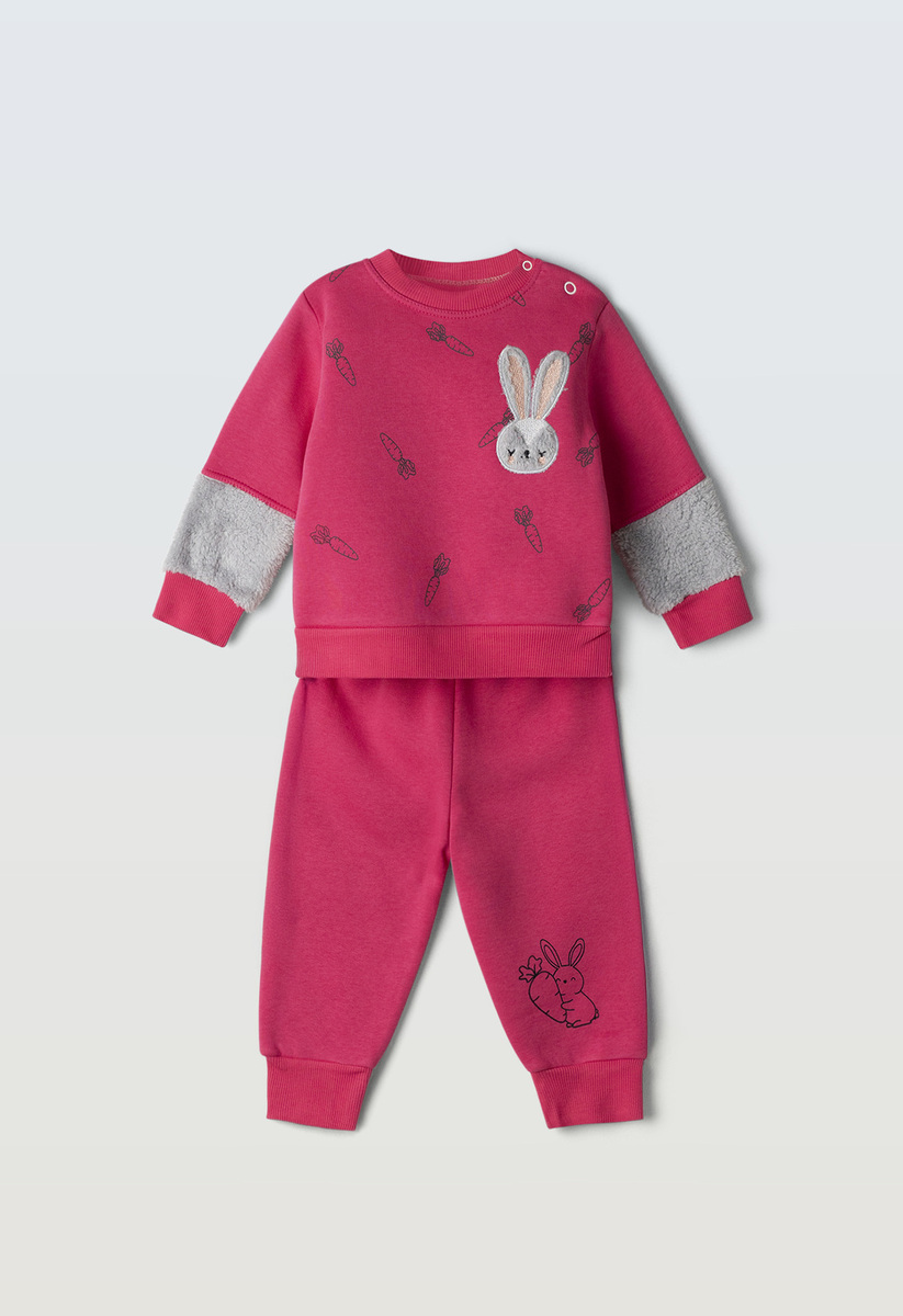 Σετ φόρμας ΕΒΙΤΑ σε φούξια χρώμα, μπλούζα φούτερ με στρογγυλή λαιμόκοψη και παντελόνι φούτερ με λάστιχο στη μέση.