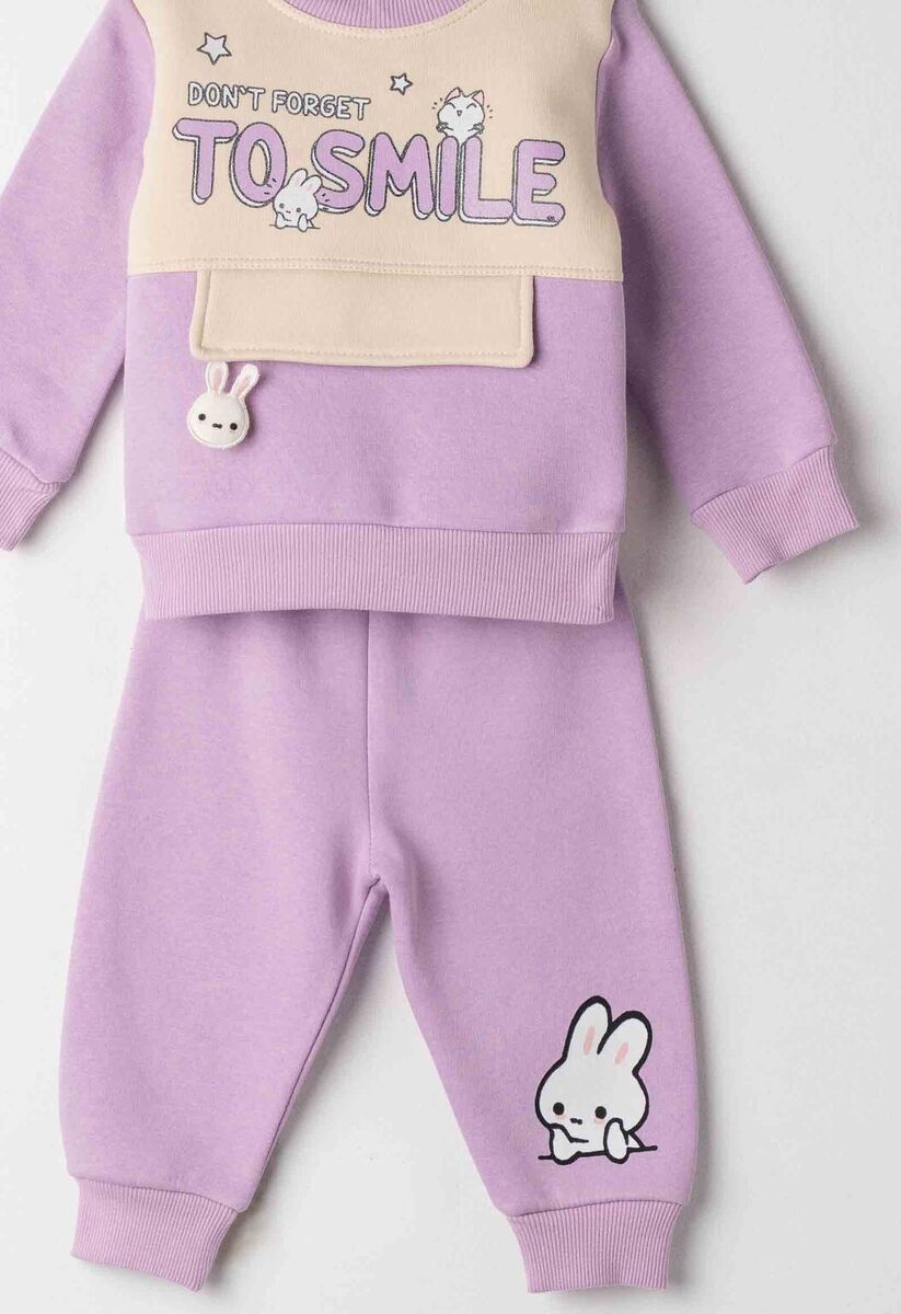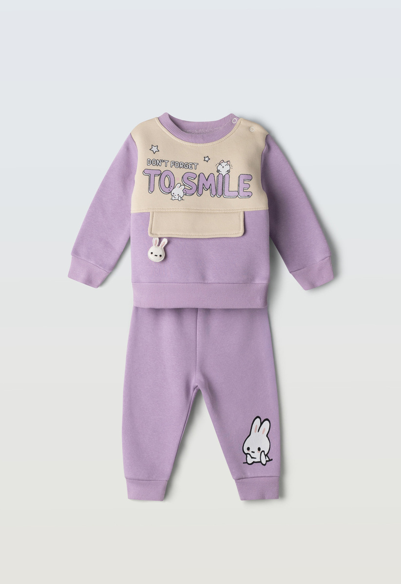 Σετ φόρμας ΕΒΙΤΑ σε λιλά χρώμα. μπλούζα φούτερ με στρογγυλή λαιμόκοψη και παντελόνι φούτερ με λάστιχο στη μέση.