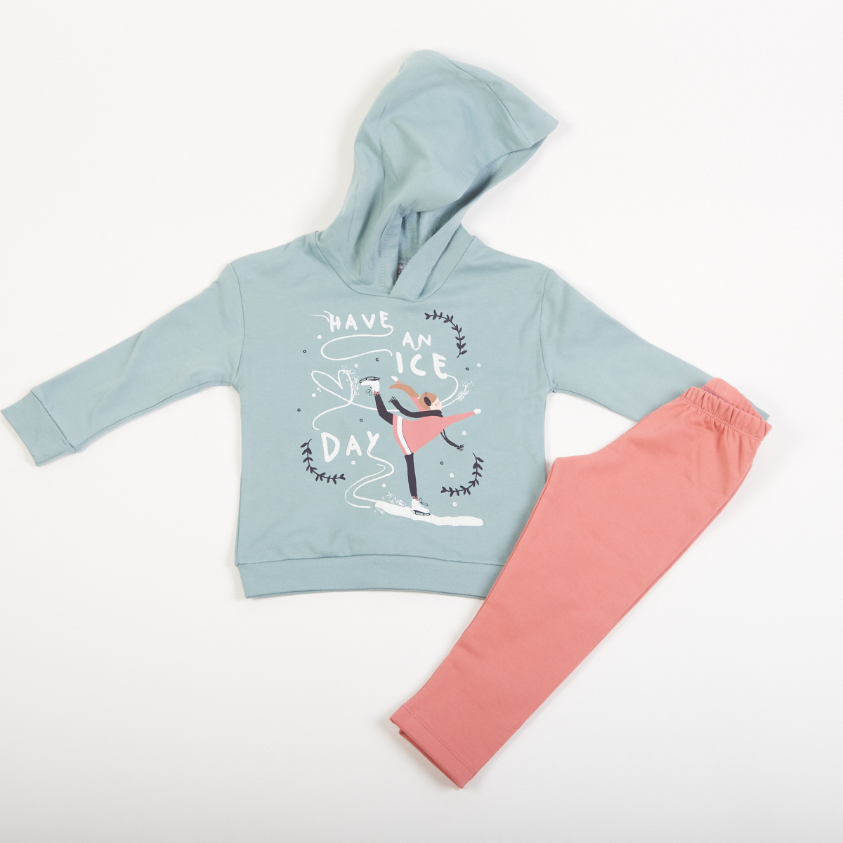 Σετ κολάν TRAX, μπλούζα φούτερ με κουκούλα σε βεραμάν χρώμα και κολάν με λάστιχο στη μέση σε χρώμα σωμόν.