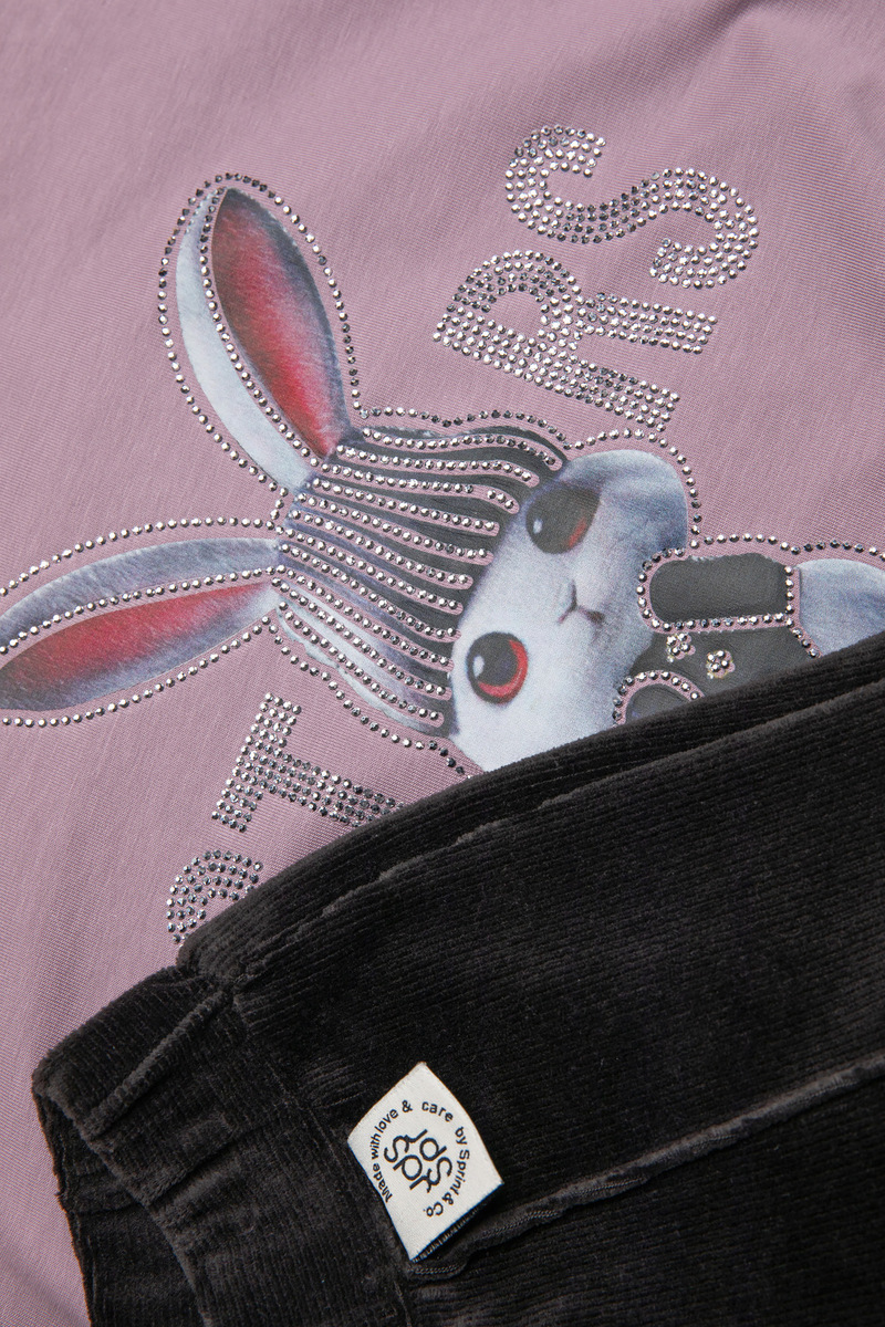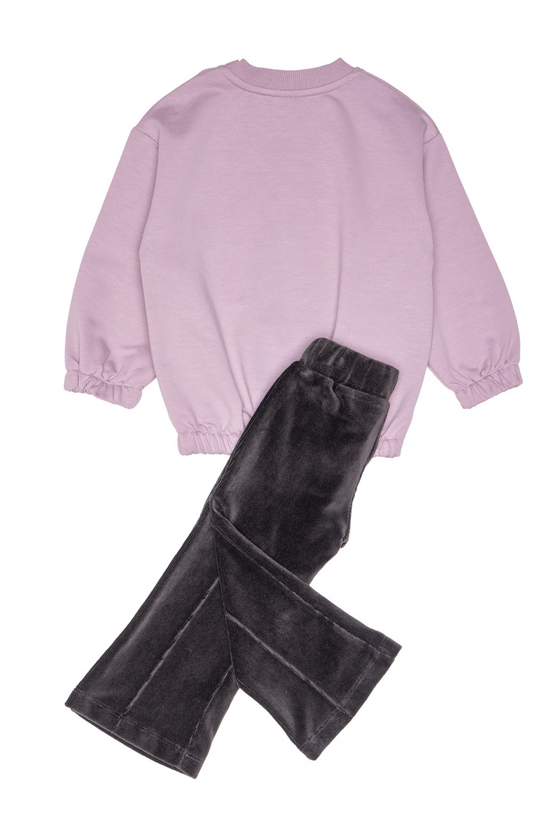 Σετ κολάν SPRINT, μπλούζα φούτερ με στρογγυλή λαιμόκοψη σε λιλά χρώμα και κολάν βελουτέ με λάστιχο στη μέση σε χρώμα γκρι-ανθρακί.