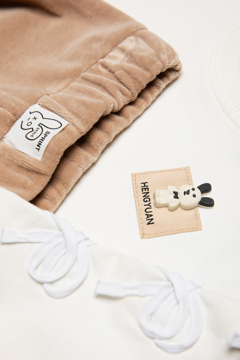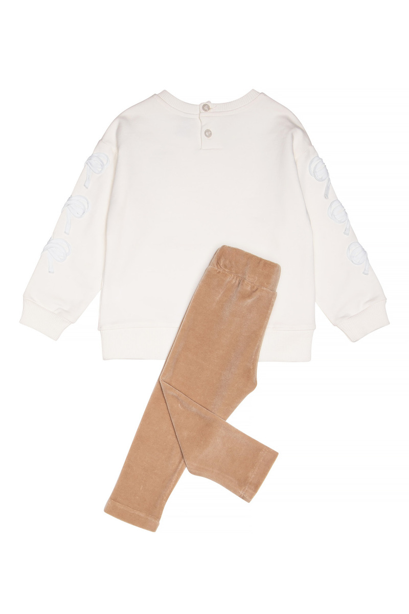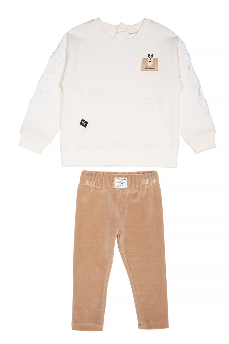 Σετ κολάν SPRINT, μπλούζα φούτερ με στρογγυλή λαιμόκοψη σε εκρού χρώμα και κολάν βελουτέ με λάστιχο στη μέση σε χρώμα μπεζ.