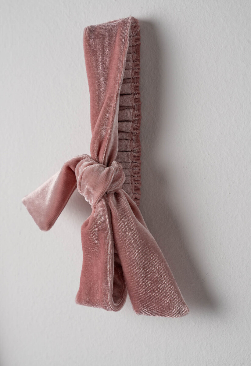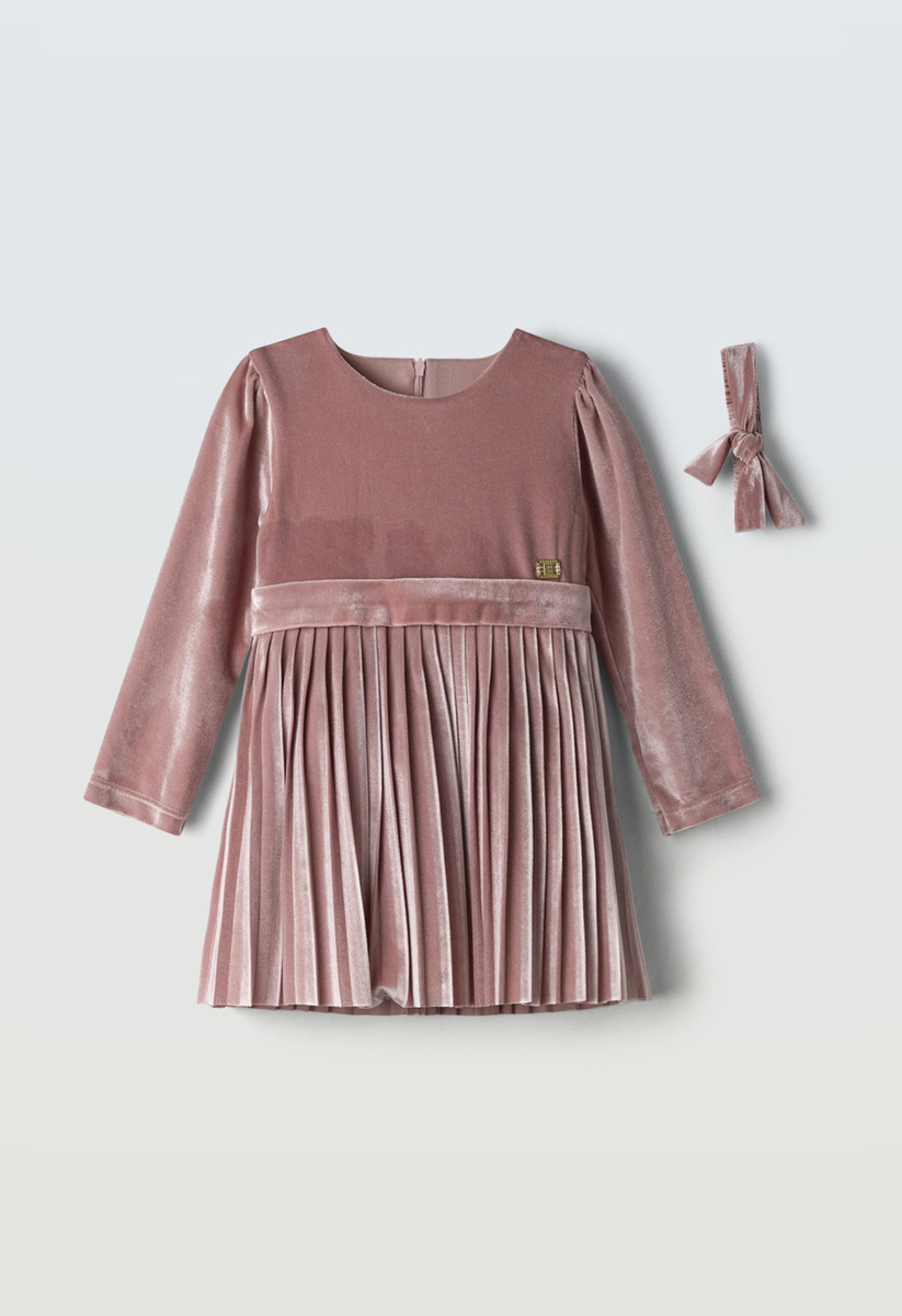 Φόρεμα βελουτέ ΕΒΙΤΑ, με ασορτί κορδέλα, σε ροζ χρώμα.