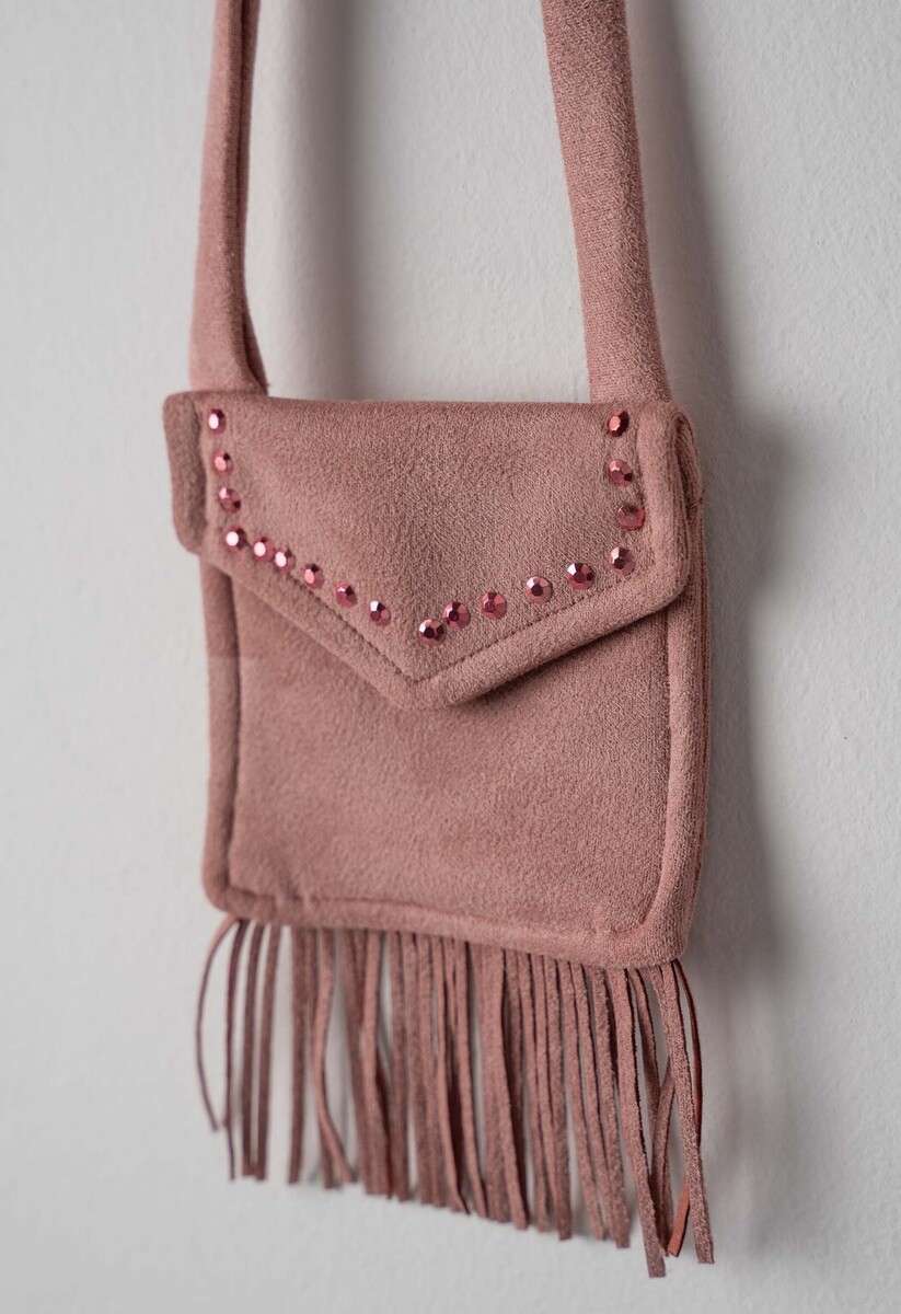 Φόρεμα ΕΒΙΤΑ με ασορτί τσαντάκι σε ροζ σκούρο χρώμα.