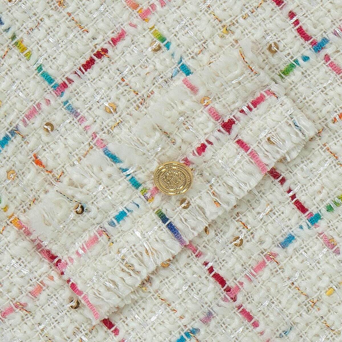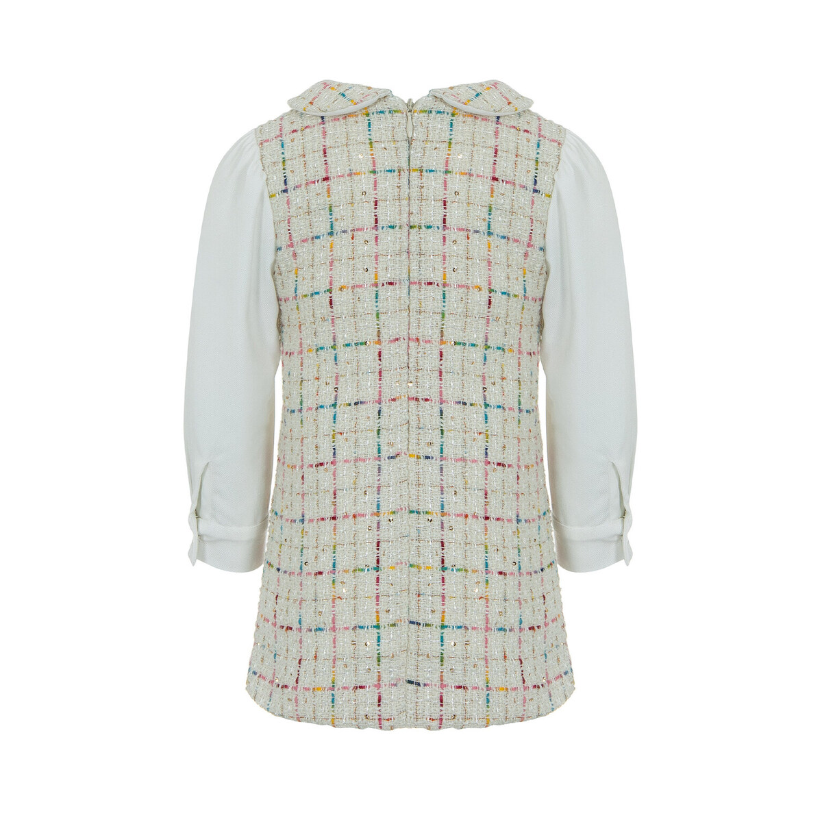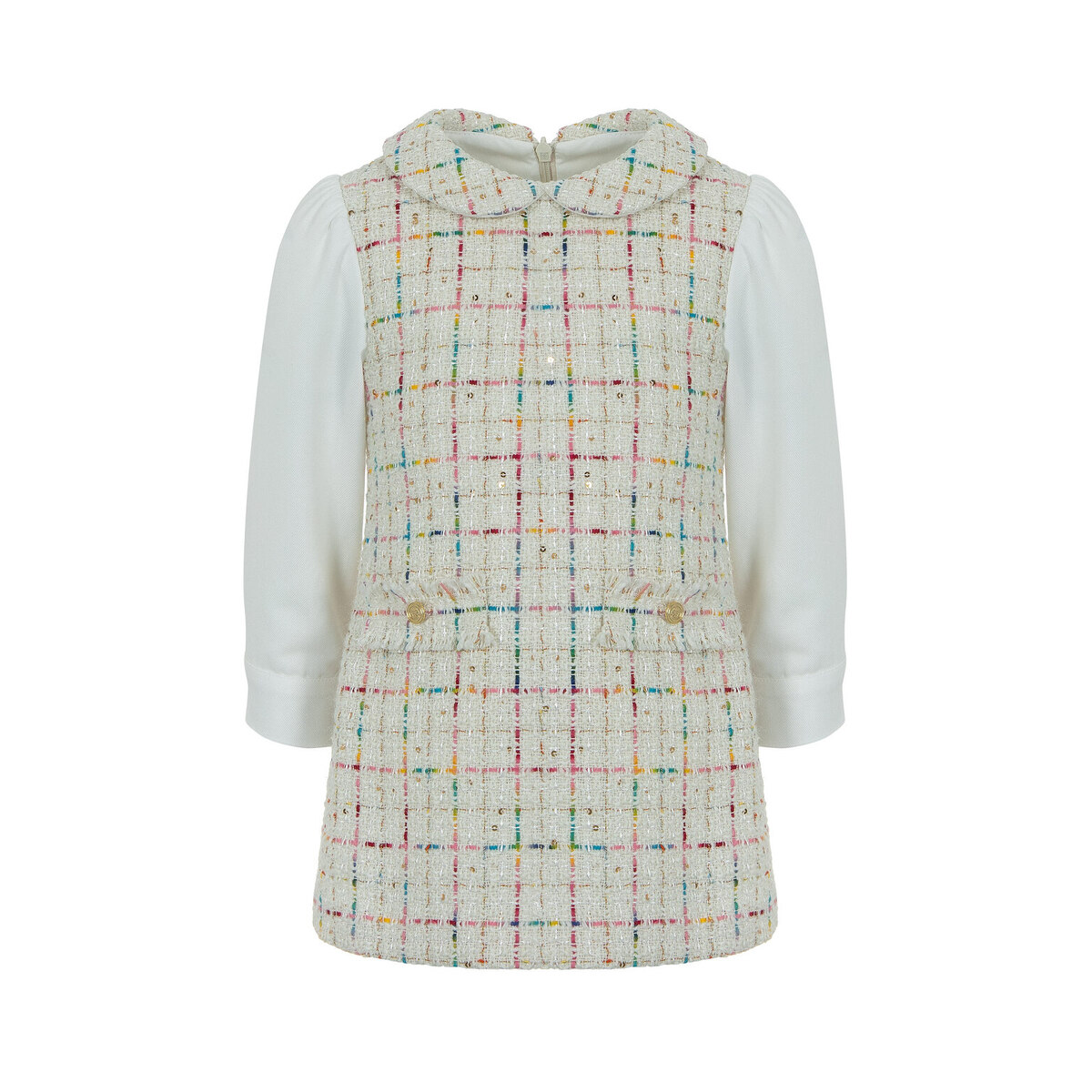 Φόρεμα LAPIN HOUSE σε εκρού χρώμα με tweed ύφασμα, πολύχρωμες λεπτομέρειες, γιακά και κούμπωμα με φερμουάρ στην πλάτη.